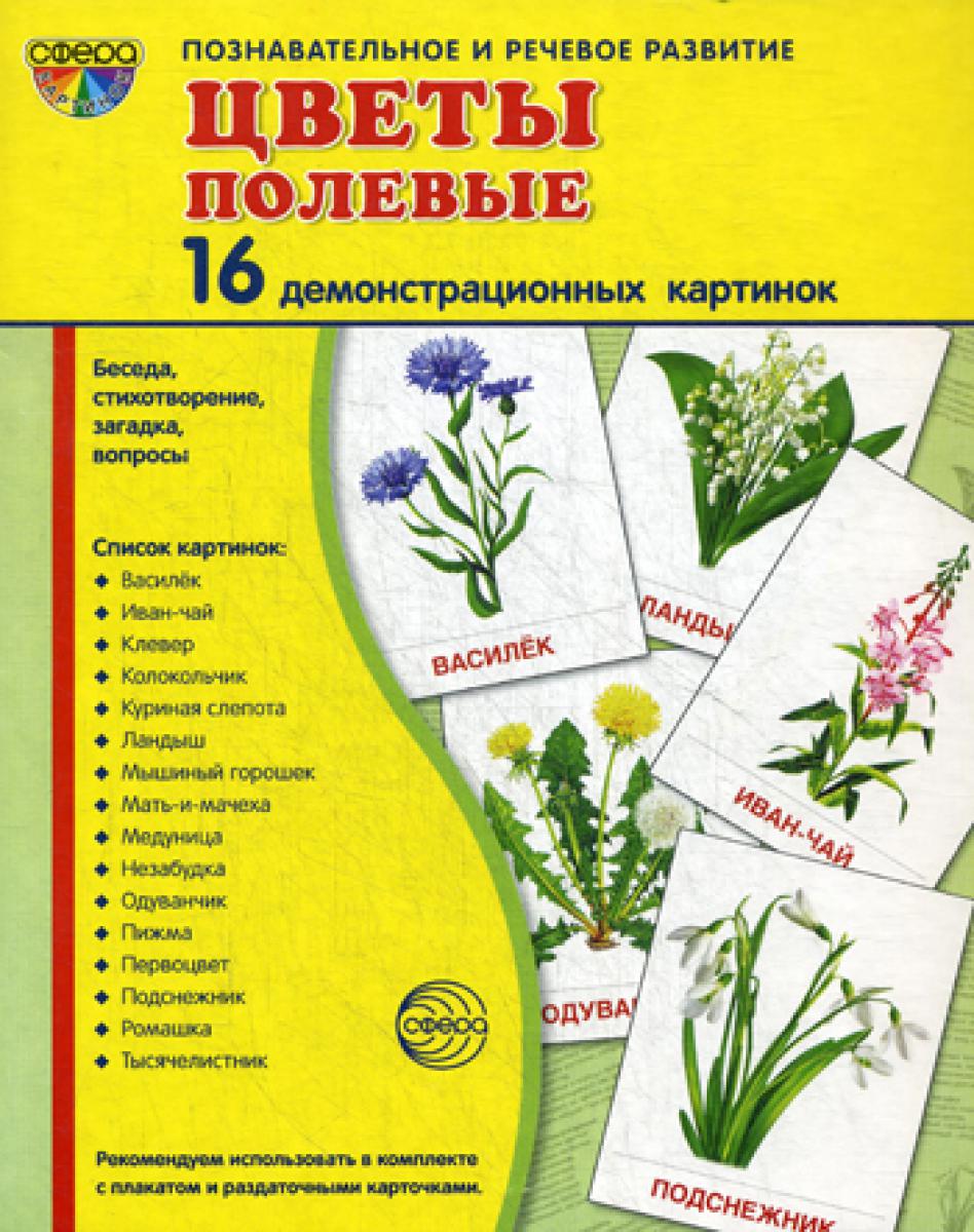 Аннотация: Демонстрационные картинки "Цветы полевые" (173х220 мм)