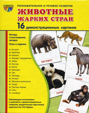 Аннотация: Демонстрационные картинки Животные жарких стран. 16 демонстрационных картинок с текстом