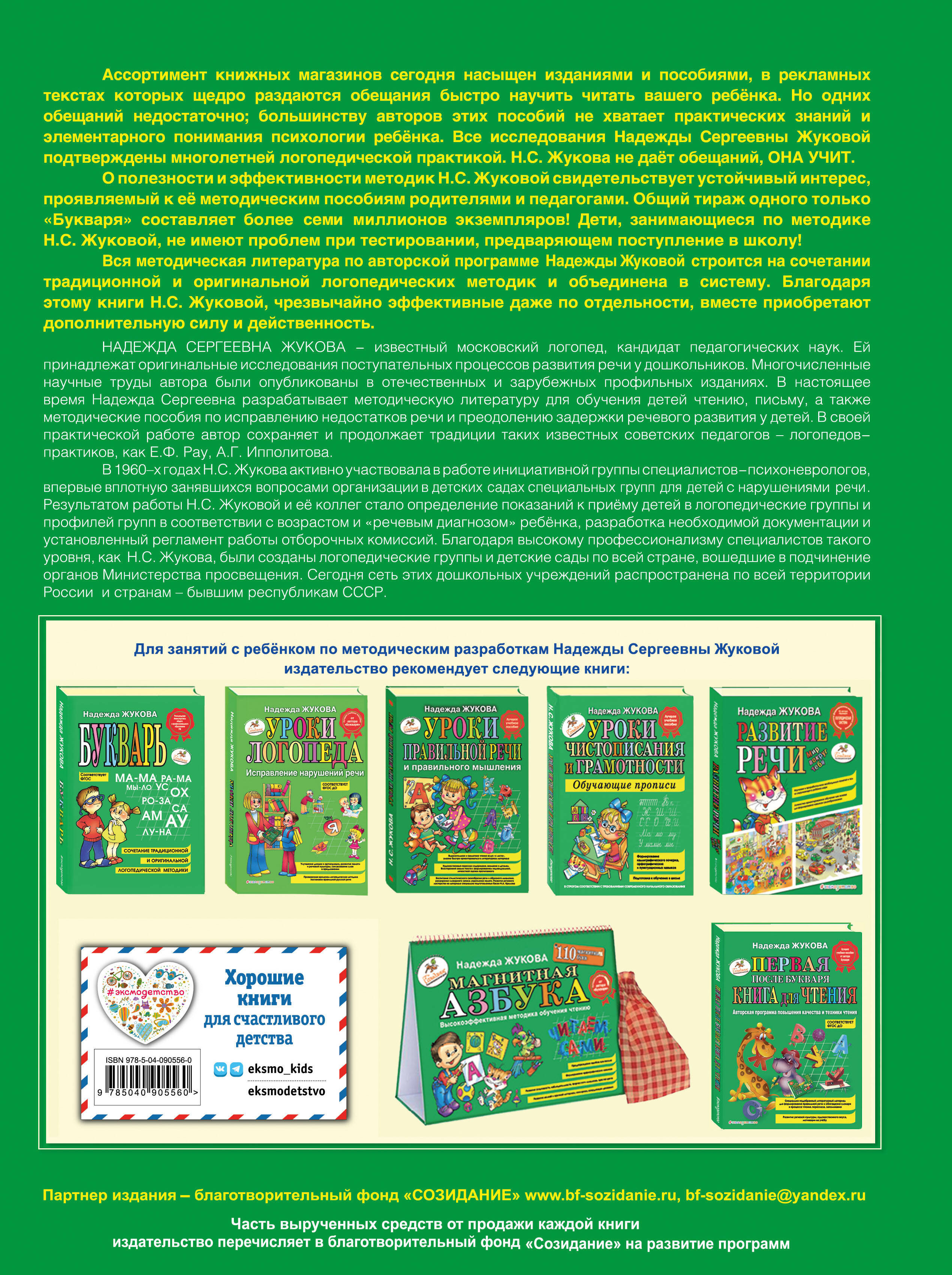 Вся методическая литература по авторской программе Надежды Жуковой строится на сочетании традиционной и оригинальной логопедической методики и объединена в систему. Благодаря этому книги Н.С. Жуковой, чрезвычайно эффективные даже по отдельности, вместе приобретают дополнительную силу и действенность. Эта книга содержит материалы: • Формирование орфографических и пунктуационных навыков, коррекция дефектов речи. • Развитие связной устной речи, повышение общей грамотности. НАДЕЖДА СЕРГЕЕВНА ЖУКОВА - известный московский логопед, кандидат педагогических наук. Ей принадлежат оригинальные исследования поступательных процессов развития речи у дошкольников. Многочисленные научные труды автора были опубликованы в отечественных и зарубежных профильных изданиях. Если вы захотите продолжить занятия с ребенком по авторской программе Н.С. Жуковой, издательство «ЭКСМО» рекомендует вам обратить внимание на следующие книги: - «Букварь», - «Первая после букваря книга для чтения», - «Уроки чистописания и грамотности», - «Я говорю правильно», - «Я пишу правильно», - «Уроки логопеда».| Издательство | ООО "Издательство "Эксмо" |