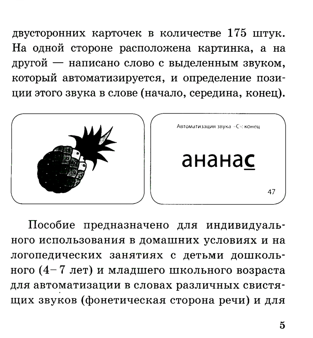 Аннотация: Звукварик: 175 карточек для автоматизации свистящих [с, с’, з, з’, ц] звуков в словах. 4-7 лет : Учебно методическое пособие