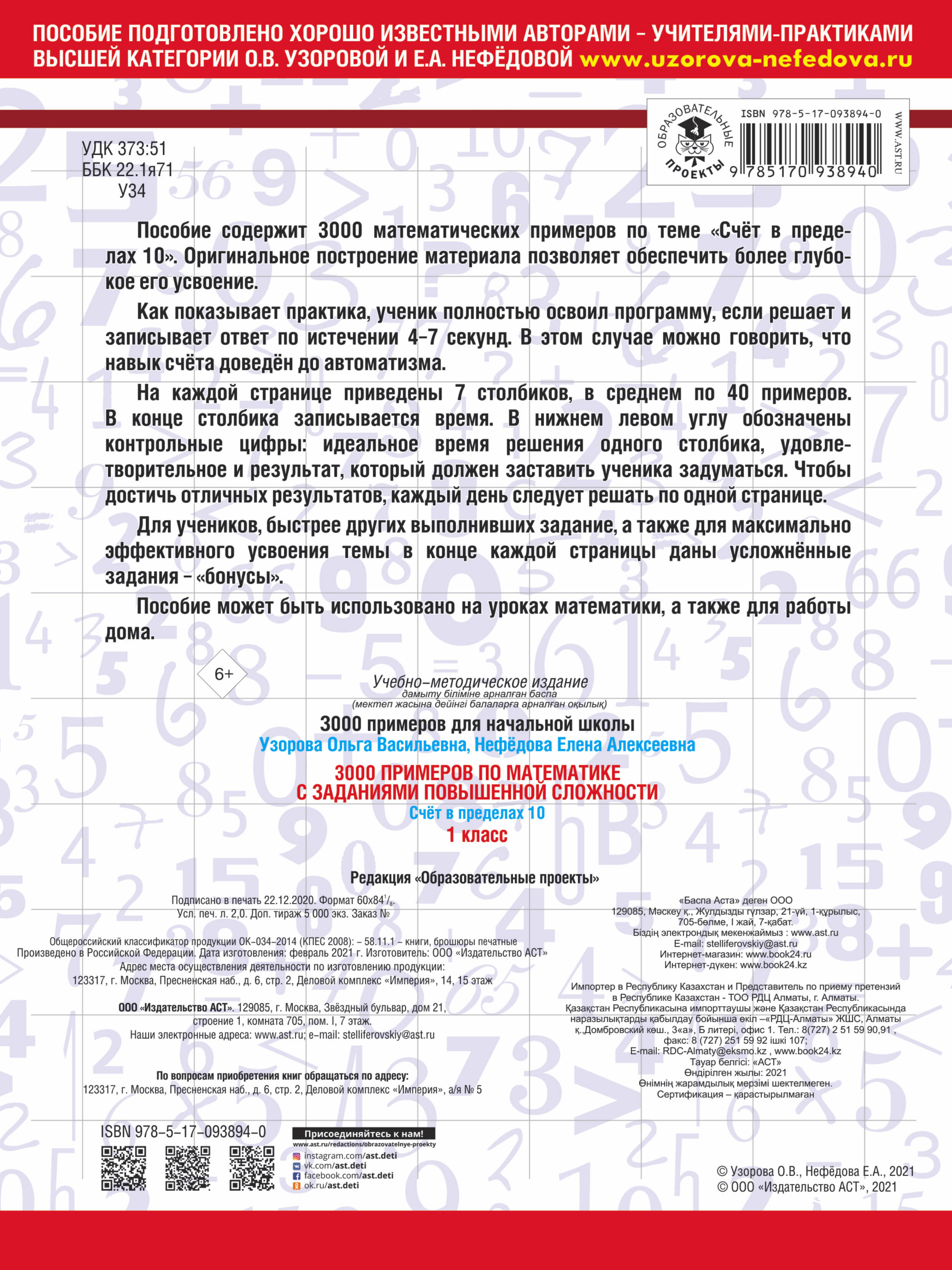 Аннотация: 3000 примеров по математике и задания повышенной сложности. Счёт в пределах 10. 1 класс