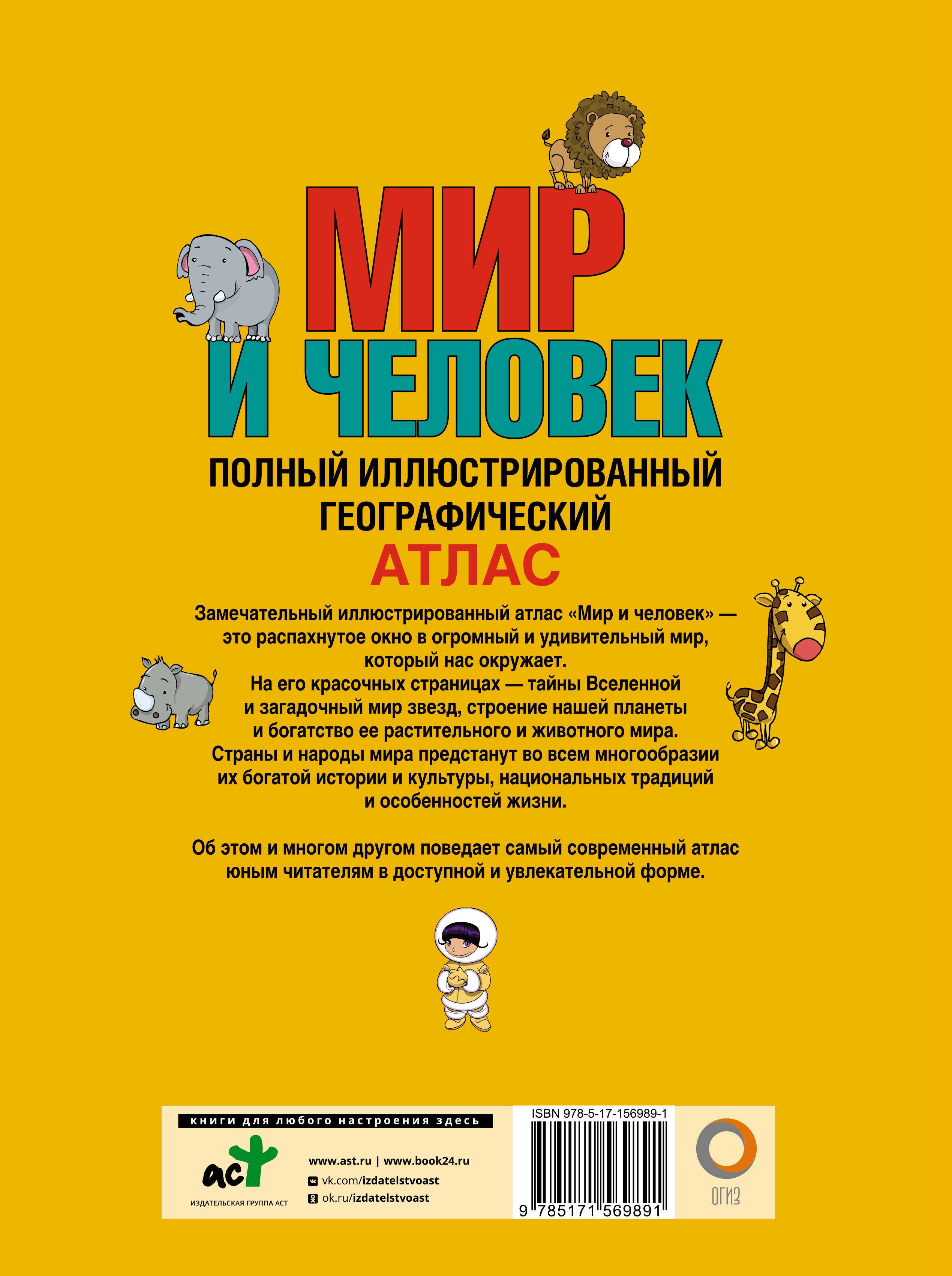 Иллюстрированный атлас МИР И ЧЕЛОВЕК - это распахнутое окно в огромный и удивительный мир, который нас окружает. Широкий охват тем, доступность изложения, наглядность материалов атласа призваны стимулировать интерес юных читателей к познанию мира. На красочных страницах атласа - тайны Вселенной и загадочный мир звёзд, строение нашей планеты и богатство её растительного и животного мира, Великие географические открытия и современные жители Земного шара. Страны и народы мира представлены во всем многообразии их богатой истории и культуры, национальных традиций и особенностей жизни. Россия представлена в новых границах: с Донецкой и Луганской Народными республиками, Запорожской и Херсонской областями, Республикой Крым и Севастополем.| Издательство | ИЗДАТЕЛЬСТВО "АСТ" |