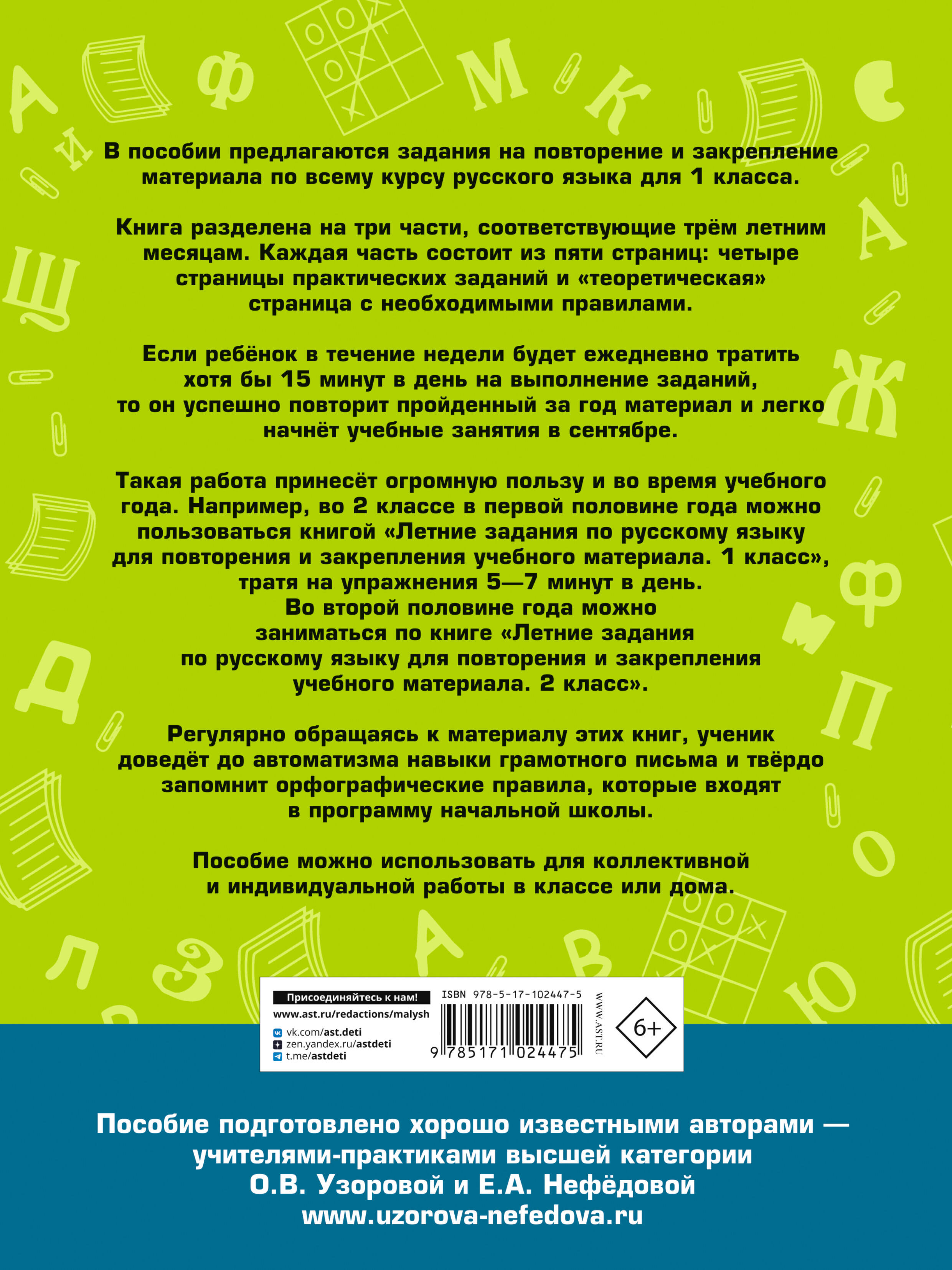 Аннотация: Летние задания по русскому языку для повторения и закрепления учебного материала. 1 класс