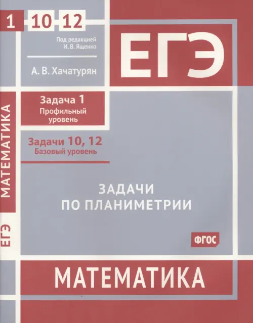 ЕГЭ Математика. Задачи по планиметрии. Задача 1, профильный уровень, задачи 10, 12, базовый уровень