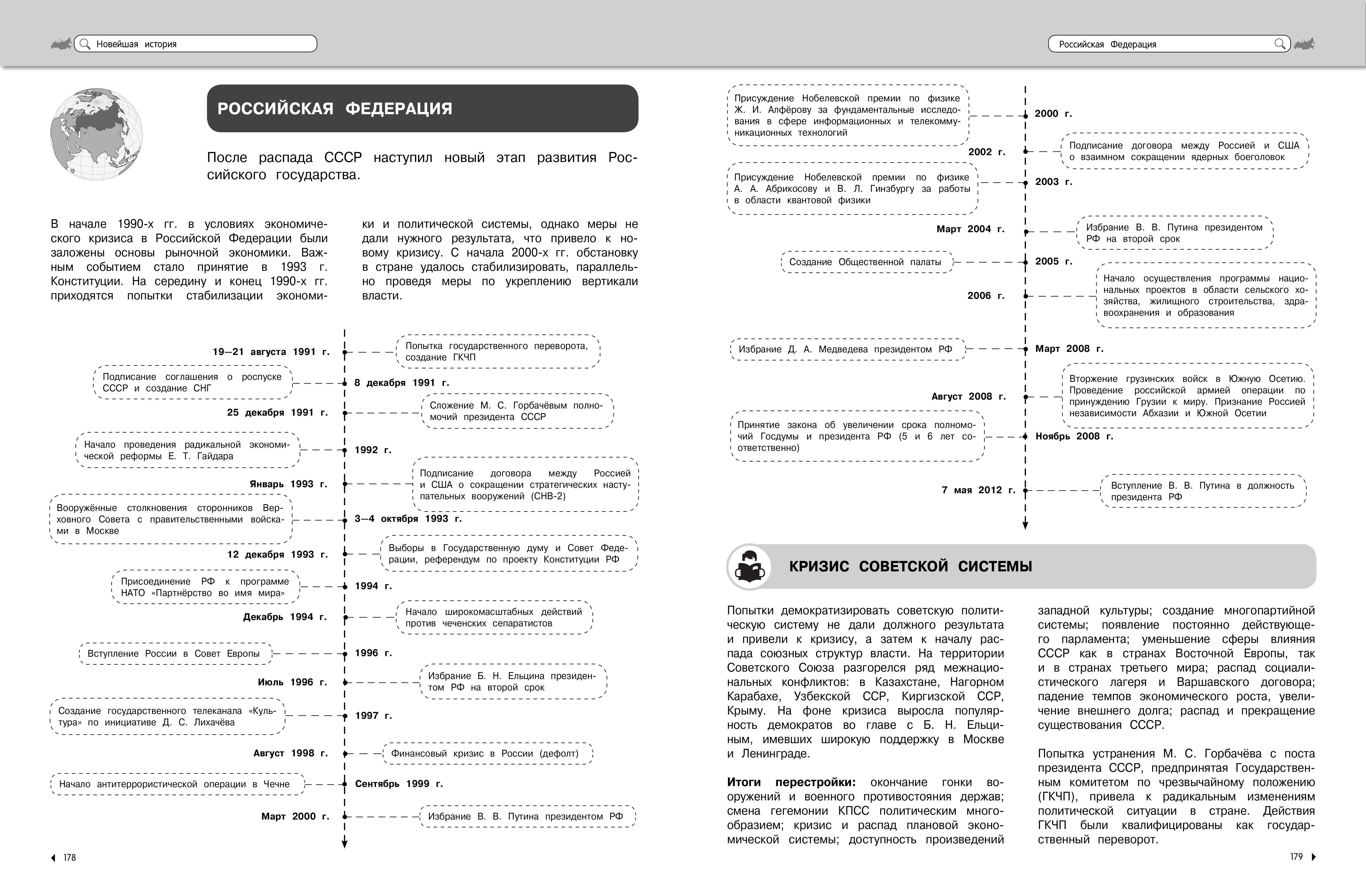 Пособие поможет быстро и эффективно подготовится к урокам, различным формам текущего и промежуточного контроля, а также к экзаменам. В книге в наглядной и доступной форме приводятся основные сведения за весь школьный курс истории. В громоздких учебниках порой бывает сложно найти ответ на какой-то конкретный вопрос. А в данном издании представлена действительно нужная и систематизированная информация, материал изложен последовательно, от простого к сложному, дополняется иллюстрациями, примерами, наглядными схемами и таблицами. В этой книге для школьников можно найти все основные разделы предмета: «Древность и средневековье», «Новое время», «Новейшая история». Справочник обеспечит знание и понимание всех, даже самых сложных тем школьной программы. В нем каждый ученик 6-11 классов найдет много полезного для своего образования, обретет уверенность на уроках, контрольных, ОГЭ и ЕГЭ.