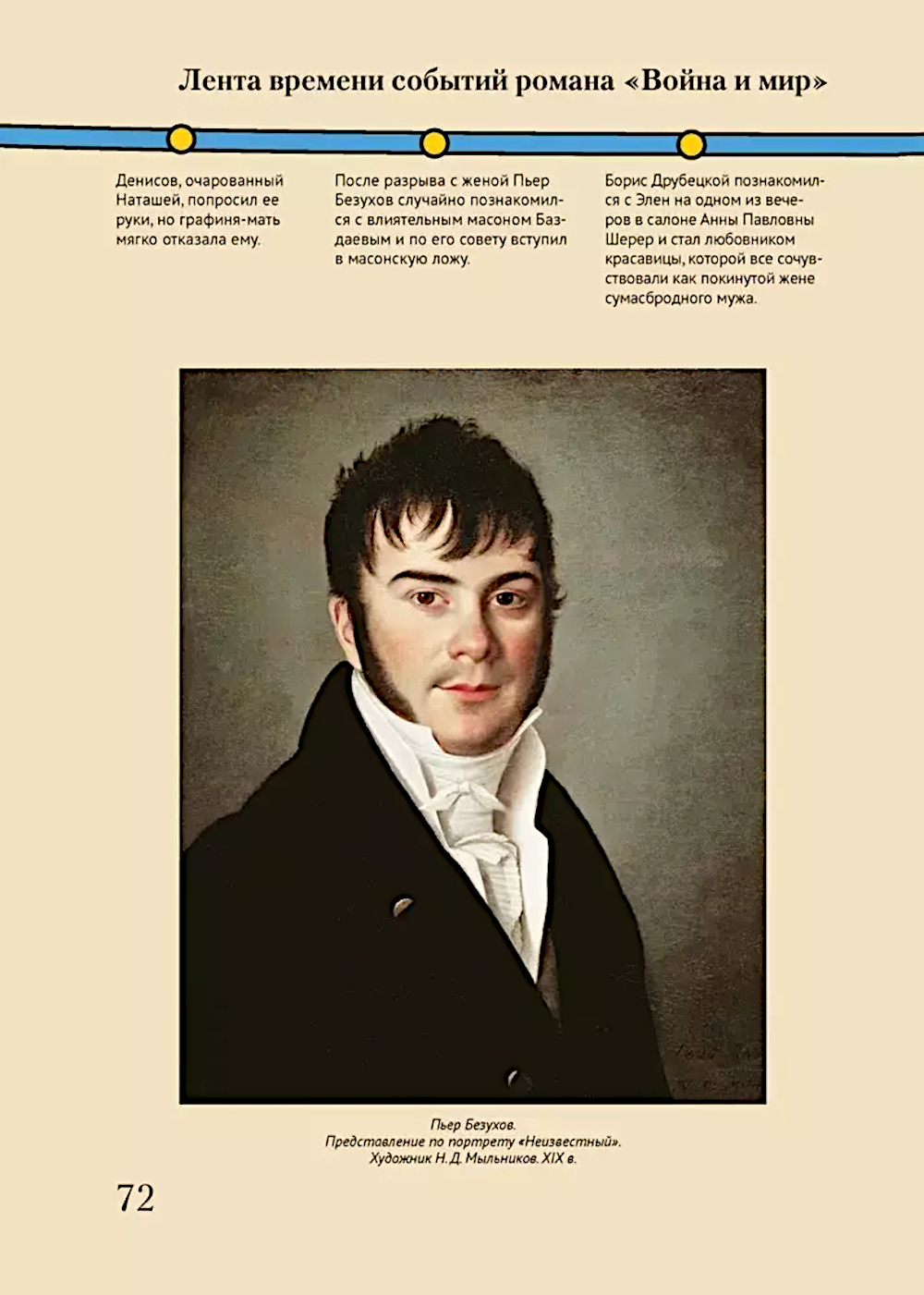 Данное издание основано на кратком, но при этом полном пересказе великого романа, сюжетные линии которого четко проходят на фоне событий начала XIX века. Чтение романа «Война и мир» сравнимо с путешествием по реке Волге от истока до устья. Путешественник плывет по великой реке, чувствует ее мощь и силу и осматривает берега. Но если по ходу плавания передавать созерцающему аэрофотоснимки и видео с борта сопровождающего самолета, то он получит более полную картину. Его представление о реке станет объемнее, многограннее. Дать читателю возможность получить такое объемное многомерное представление о романе Л.Н. Толстого было одной из главных задач при создании иллюстрированного путеводителя. В книге нет литературоведческого анализа, искусствоведческих описаний. Только этапы жизни героев и живопись, дающая возможность увидеть людей и исторические события глазами художников того времени. Путеводитель предназначен в первую очередь для старшеклассников. Но не для того чтобы они не читали оригинал, а наоборот, чтобы было интереснее читать текст, написанный более ста лет назад. Предназначен он и для тех, кто раз в три-четыре года перечитывает «Войну и мир». Они найдут в книге много интересных фактов, подробностей, деталей, которые дополнят картину мира, созданную Л.Н. Толстым.| Издательство | Проспект |