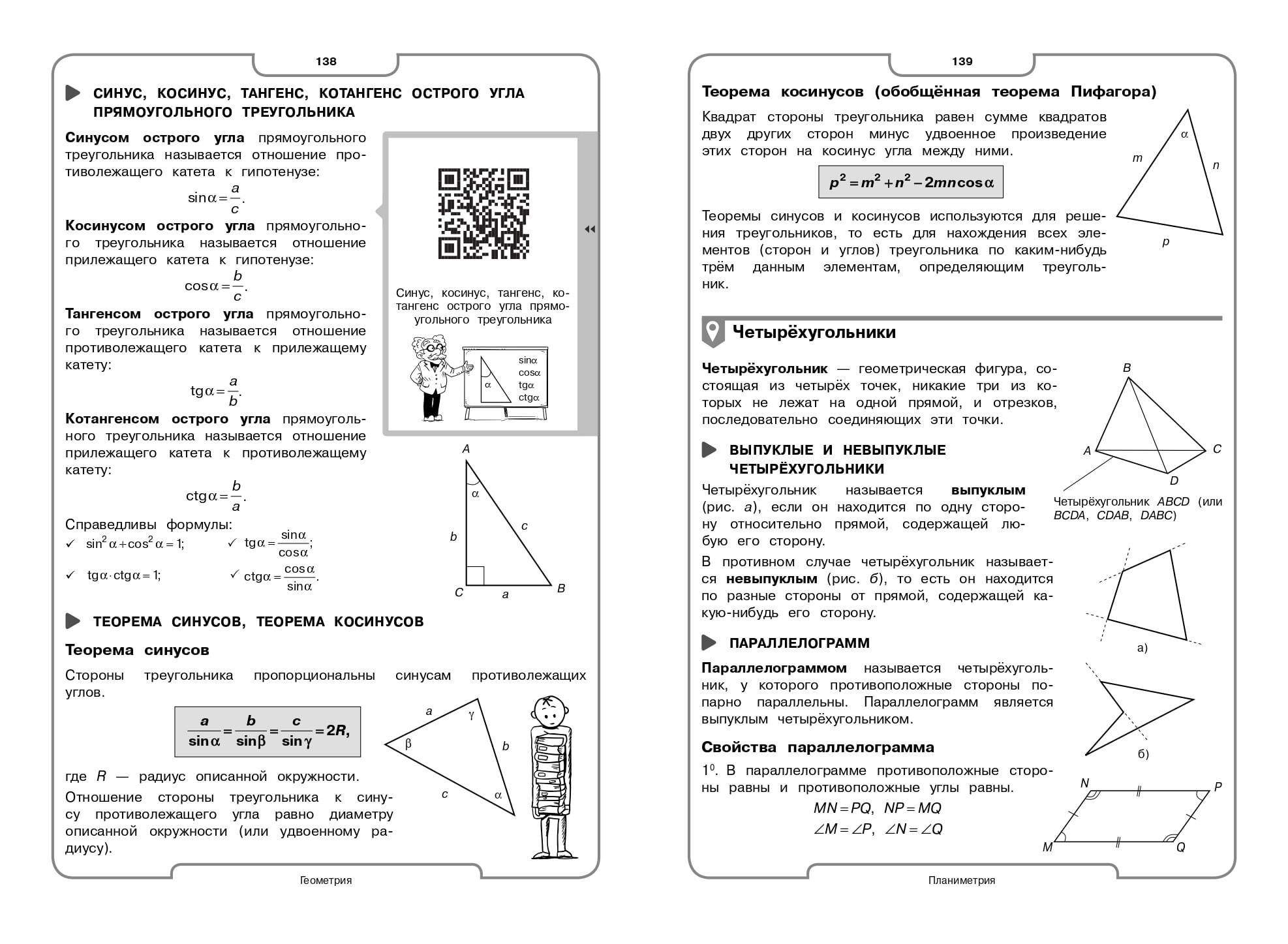 В книге сведения по основным темам школьного курса математики сопровождаются примерами, схемами и таблицами, что позволит эффективнее и проще усвоить информацию. Главное отличие издания от множества других - обучающие анимационные видео, которые помогут учащимся разобраться со сложными темами, не прибегая к помощи репетиторов. Ученику нужно лишь отсканировать QR-код, после чего на устройстве откроется ссылка на короткие видеоуроки, в которых содержится развёрнутый поясняющий материал по темам, особо актуальным для сдачи экзаменов. Книга в комплекте с обучающими видеоматериалами - незаменимый инструмент при самостоятельном изучении предмета. Издание будет полезно учащимся средних и старших классов, учителям, а также всем, кто интересуется математикой.| Издательство | ООО "Издательство "Эксмо" |