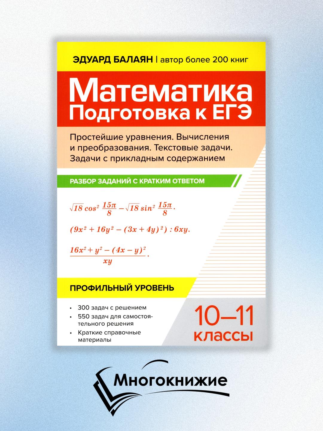 Математика. Подготовка к ЕГЭ. Простейшие уравнения. Вычисления и преобразования. 10-11 классы