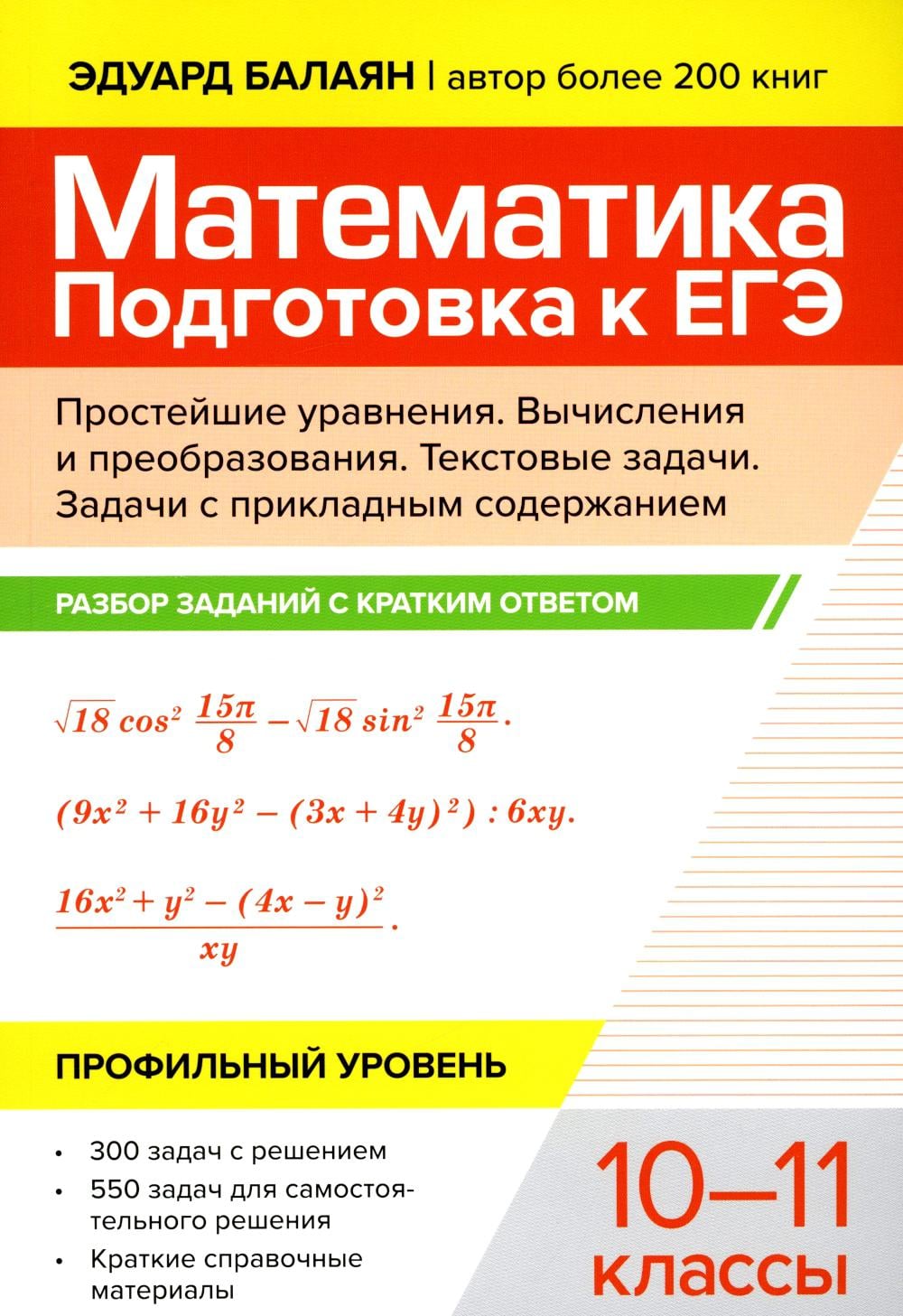 Аннотация: Математика. Подготовка к ЕГЭ. Простейшие уравнения. Вычисления и преобразования. 10-11 классы