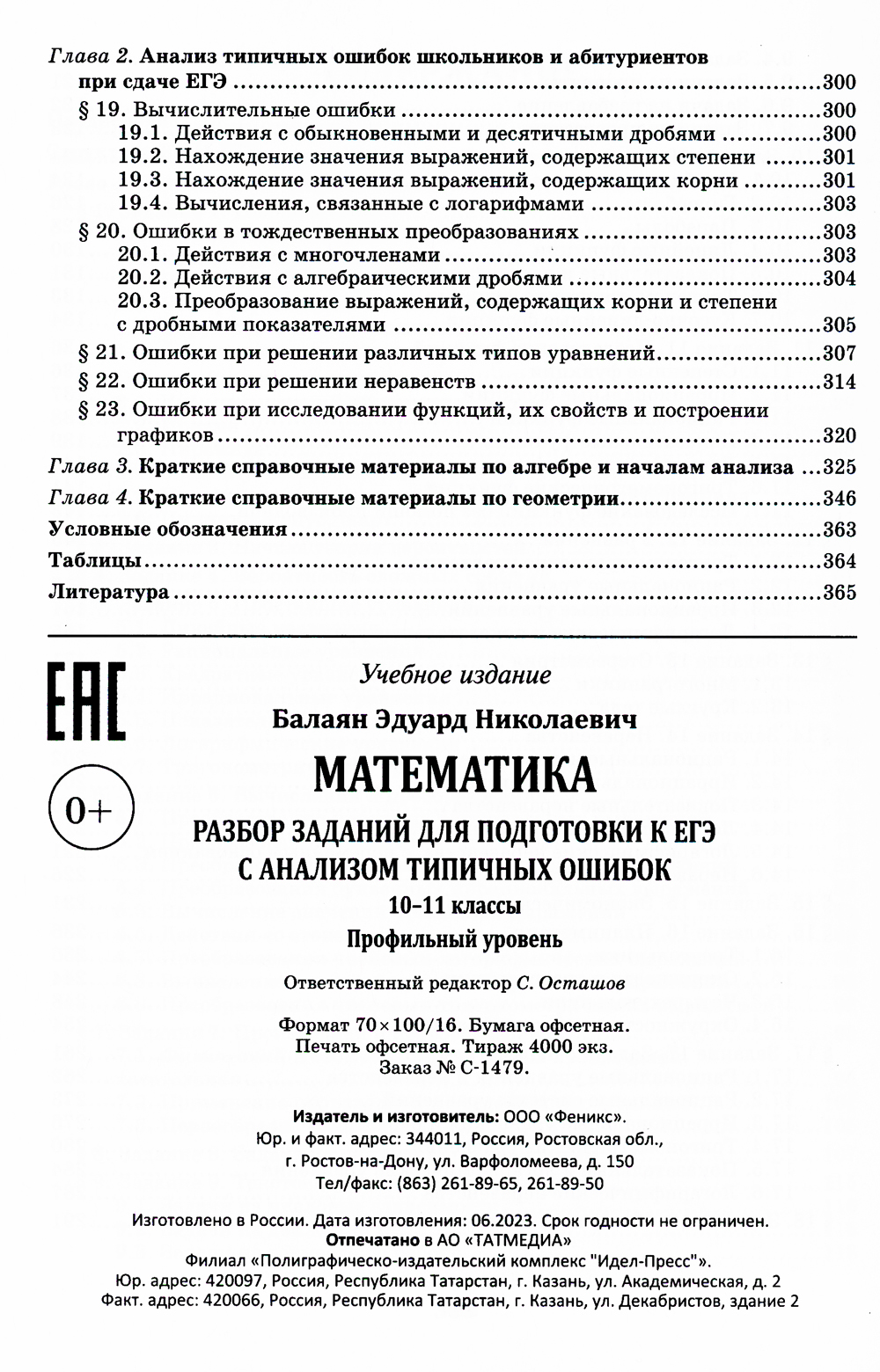 Предлагаемое пособие содержит подробное решение всех заданий ЕГЭ профильного уровня с анализом типичных ошибок, допускаемых школьниками и абитуриентами. Ошибки классифицированы, указаны их причины и приведены правильные решения.