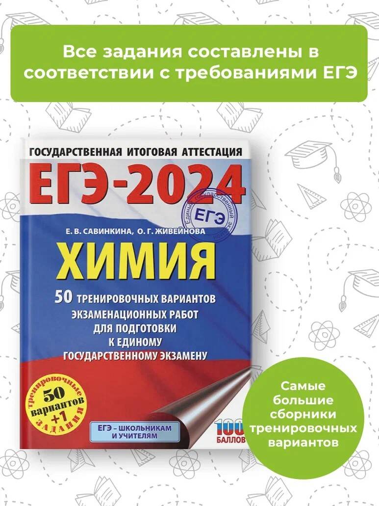 ЕГЭ-2024. Химия (60x84/8). 50 тренировочных вариантов экзаменационных работ для подготовки к единому государственному экзамену