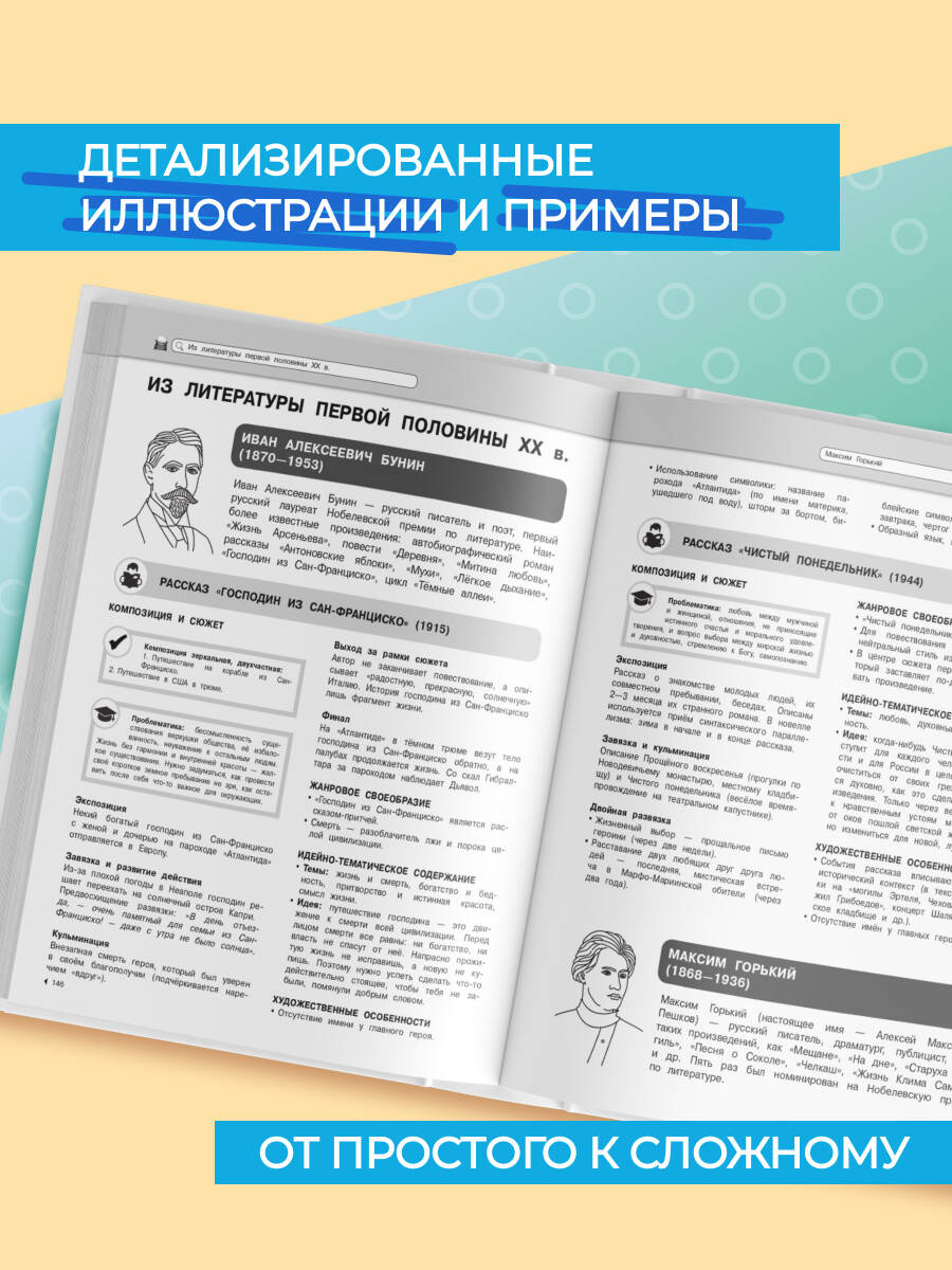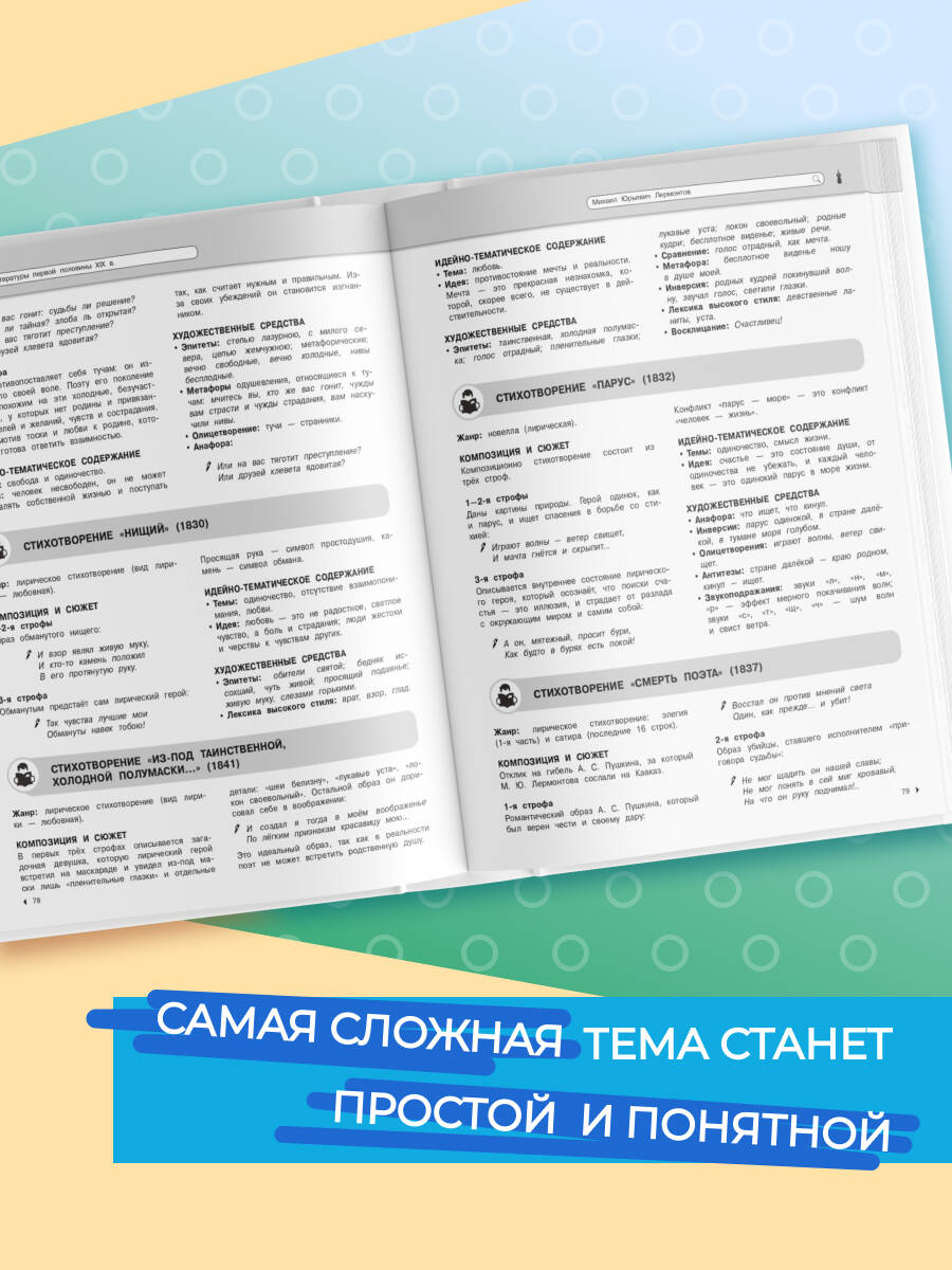 Пособие поможет быстро и эффективно подготовится к урокам, различным формам текущего и промежуточного контроля, а также к экзаменам. В книге в наглядной и доступной форме приводятся основные сведения за весь школьный курс литературы. В громоздких учебниках порой бывает сложно найти ответ на какой-то конкретный вопрос. А в данном издании представлена действительно нужная и систематизированная информация, материал изложен последовательно, от простого к сложному, дополняется иллюстрациями, примерами, наглядными схемами и таблицами. В этой книге для школьников можно найти все основные разделы предмета: «Теория литературы», «Древнерусская литература», «Литература XVIII в.», «Литература XIX в.», «Литература XХ - начала XXI в.». Справочник обеспечит знание и понимание всех, даже самых сложных тем школьной программы. В нем каждый ученик 5-11 классов найдет много полезного для своего образования, обретет уверенность на уроках, контрольных, ОГЭ и ЕГЭ.| Издательство | ООО "Издательство "Эксмо" |