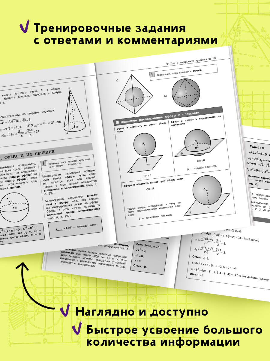 Справочник содержит важные материалы, которые помогут даже в сжатые сроки подготовиться к урокам, ОГЭ и ЕГЭ по математике. Теория изложена в наглядной форме и дополняется блоком практических заданий c ответами для комплексного закрепления знаний. Информация представлена в максимально удобной и эффективной для изучения и запоминания форме - в схемах и таблицах, что обеспечит плодотворную и быструю подготовку к урокам, контрольным и различным экзаменам. В пособии можно найти все основные разделы предмета: «Арифметика», «Алгебра», «Геометрия», «Начала математического анализа», «Комбинаторика», «Теория вероятностей и статистика». В справочнике ученики 5-11 классов найдут много полезного для своего образования. Он станет незаменимым помощником для всех, кто хочет подтянуть свои знания или вспомнить уже изученные темы, подготовиться к урокам и экзаменам, а также будет прекрасным дополнением к учебнику и просто облегчит процесс учебы.| Издательство | ООО "Издательство "Эксмо" |