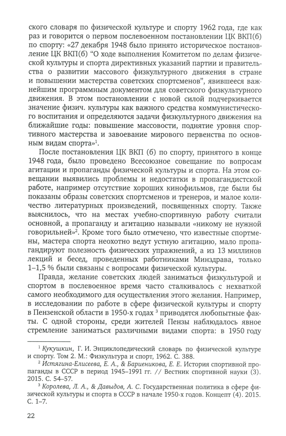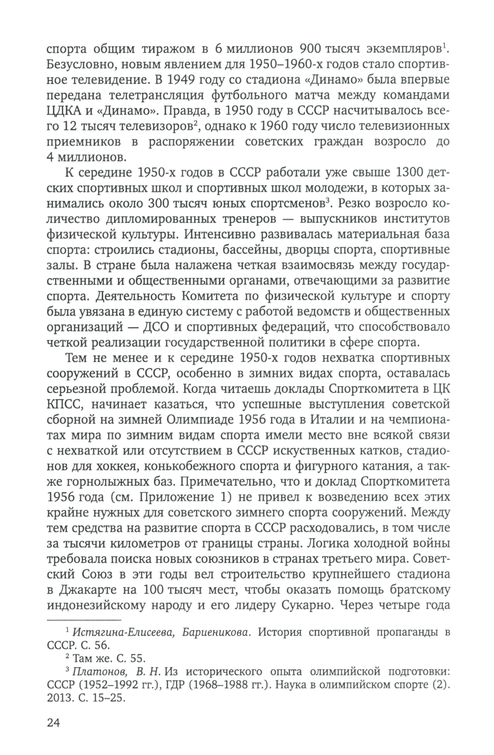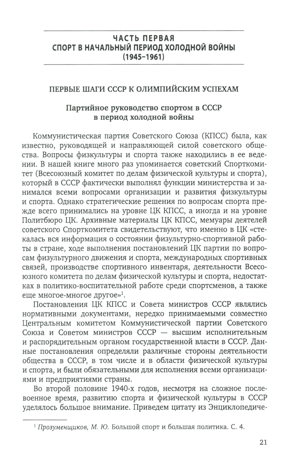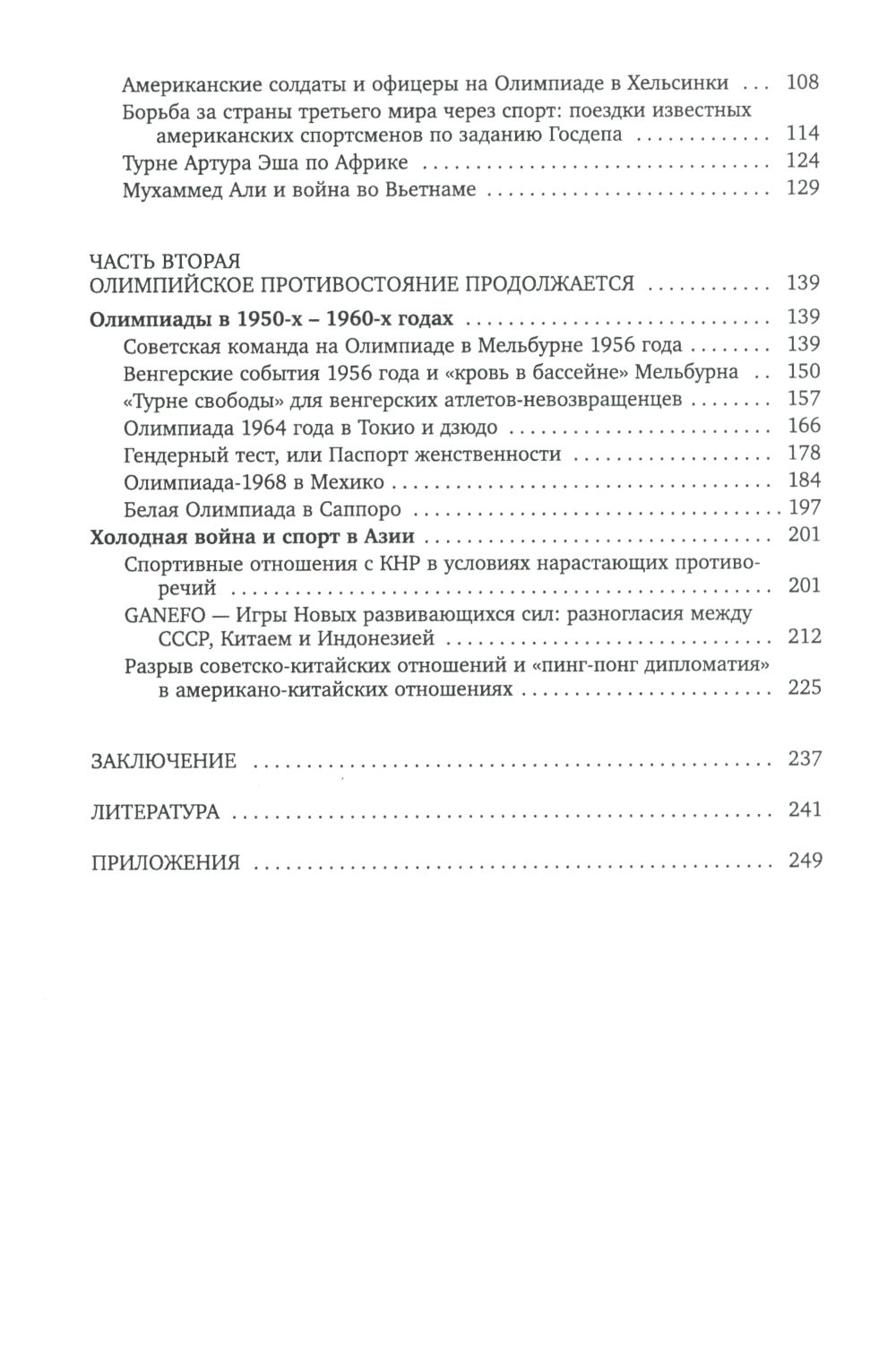 Холодная война, продолжавшаяся почти 50 лет, с 1946 по 1991 годы, является важнейшим предметом изучения и для историков, и для специалистов в области международных отношений, которые опубликовали тысячи, если не десятки тысяч работ, описывающие те или иные события холодной войны и взаимодействие стран в эти полвека. В то же время годы холодной войны стали периодом феноменального роста и развития в области международного спорта: вовлечение все большего количества стран в олимпийское движение, регулярное проведение чемпионатов мира и чемпионатов континентов по различным видам спорта, расширение демографических и географических рамок как любительского, так и профессионального спорта, возрастающая роль спорта для социально-экономического развития стран и пр. Не секрет, что для Советского Союза международный спорт стал еще одной важнейшей сферой, в которой можно было наглядно продемонстрировать достижения социалистической модели развития и набирать дополнительные очки в холодной войне. Цель первой книги монографии «Спорт и холодная война» - описать и проанализировать наиболее значимые и интересные спортивные события, непосредственно связанные с холодной войной с 1946 года по начало 1970-х годов. Наибольшее внимание уделено истории вхождения СССР в Олимпийское движение в начале 1950-х годов, описанию ключевых событий отдельных Олимпиад, острому спортивному противостоянию СССР и США, а также тому, как обе супердержавы вели борьбу с помощью спорта за влияние в странах Азии, Африки и Латинской Америки. Читателя заинтересует рассказ о роли спорта в советско-китайских отношениях в 1950-е и 1960-е годы и о том, как США и КНР использовали спорт для нормализации отношений в начале 1970-х годов. Книга поможет историкам, политологам и специалистам по международным отношениям, студентам и аспирантам, вдумчивым любителям спорта составить более полное представление о том, насколько тесно международный спорт был переплетен с холодной войной и как часто спорт использовался в качестве инструмента холодной войны.| Издательство | ЛЕНАНД |