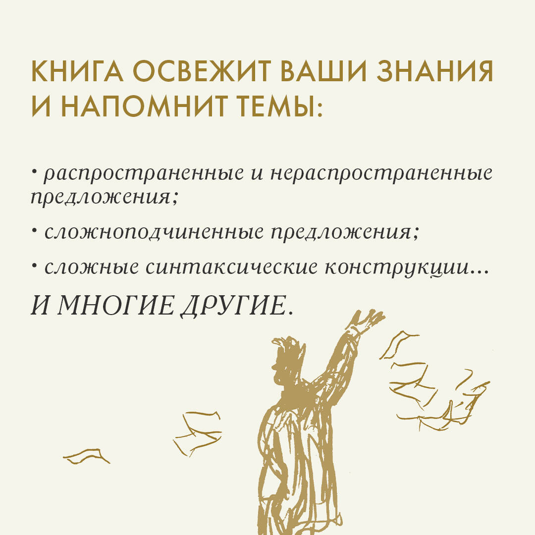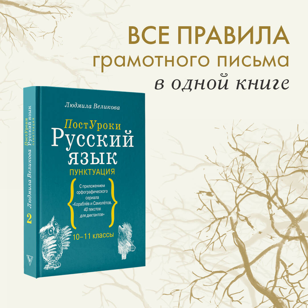 Хотите повысить уровень грамотности? Освежить в памяти школьный курс русского языка? Успешно сдать экзамен? Книга научит вас правильно расставлять знаки препинания и разложит по полочкам зубодробительные правила. Базовый материал по пунктуации объединен в увлекательный орфографический сериал, а повествование дополняют иллюстрации легендарного художника-мультипликатора Юрия Норштейна, создателя знаменитого на весь мир «Ежика в тумане». Изучайте теорию и читайте интересные тексты, выполняя задания к ним! Такой метод облегчает запоминание, тренирует образное мышление и позволяет превратить обычный урок в познавательную игру для читателей всех возрастов.| Издательство | ИЗДАТЕЛЬСТВО "АСТ" |