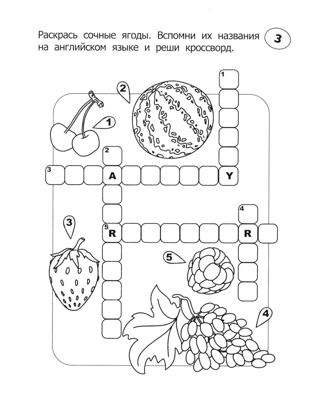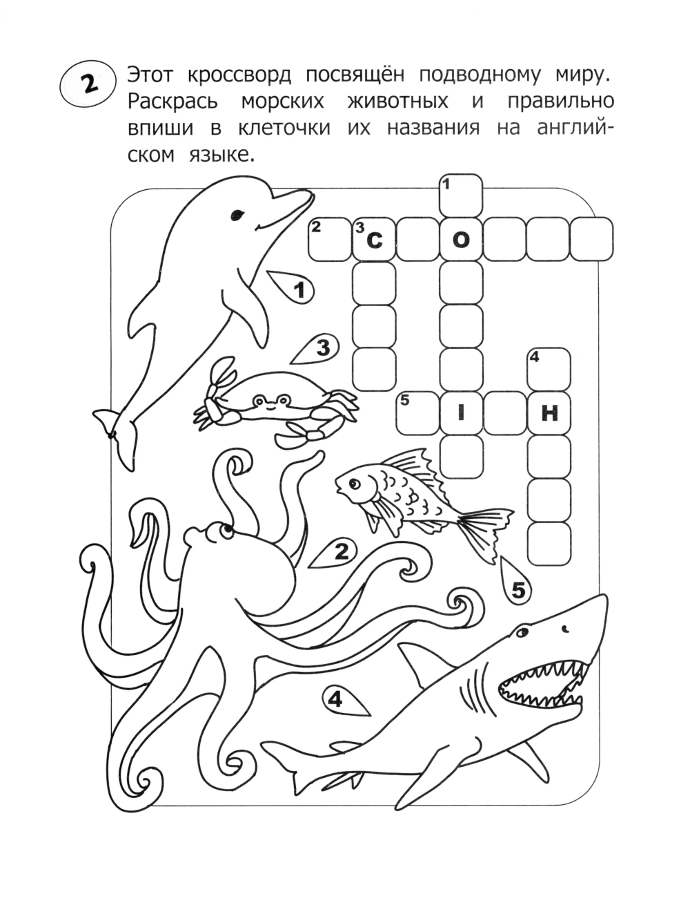 Кроссворды-раскраски по английскому языку для детей 7-10 лет