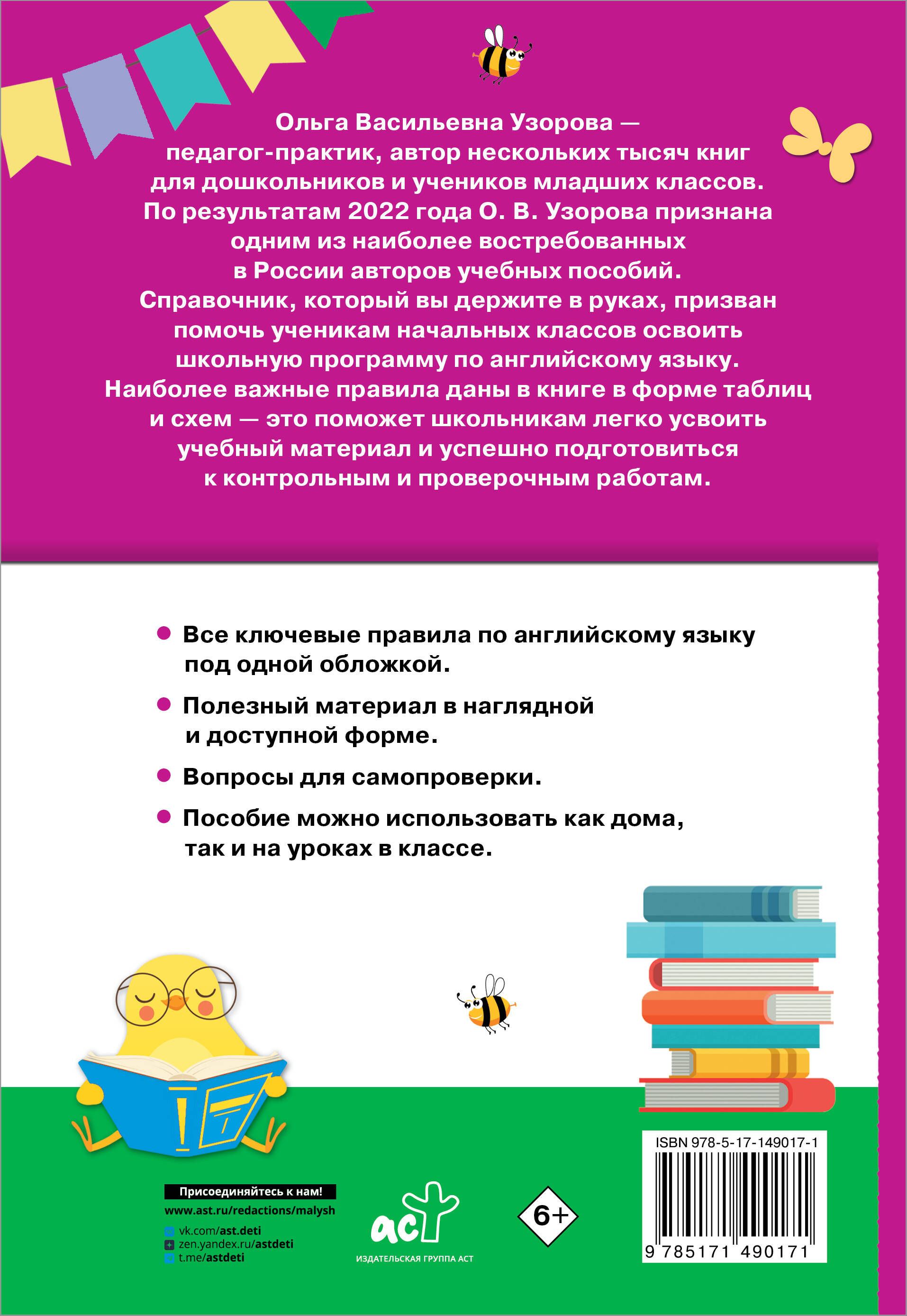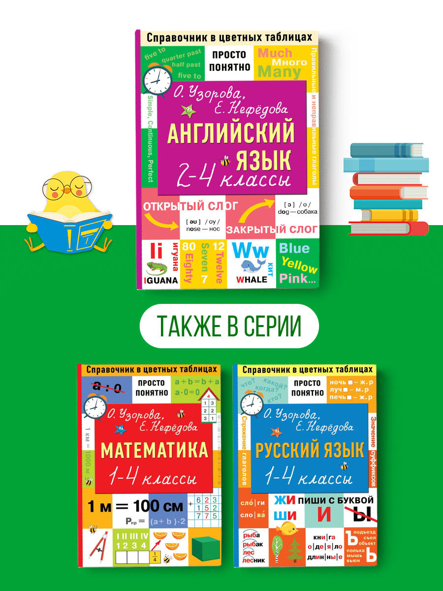 «Английский язык. 2−4 классы» - это пособие по английскому языку для учащихся начальной школы, основанное на авторской методике О. В. Узоровой. Все правила по английскому языку даны в книге в виде цветных схем и таблиц. Учебный материал, представленный в табличной форме, нагляден и прост для понимания, а цветовое оформление облегчает запоминание информации и делает процесс обучения эффективным.| Издательство | ИЗДАТЕЛЬСТВО "АСТ" |
