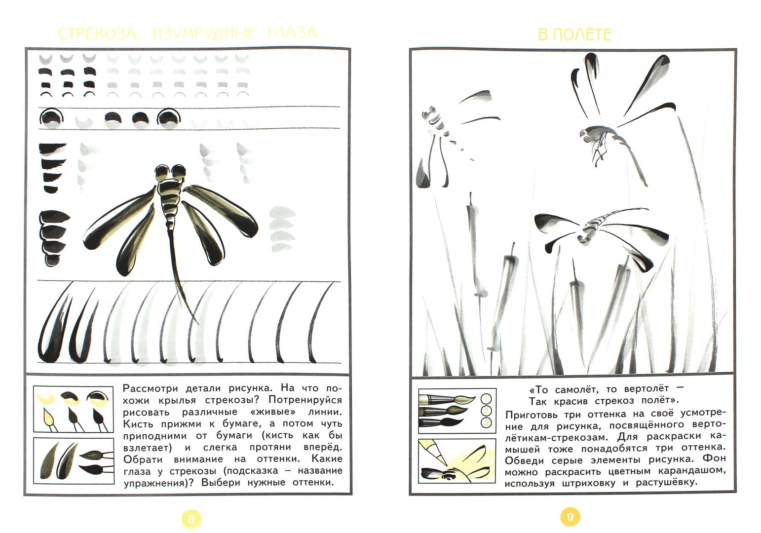 Упражнения второй части направлены на овладение первоначальными навыками рисования кисточкой (или ручкой-кисточкой).