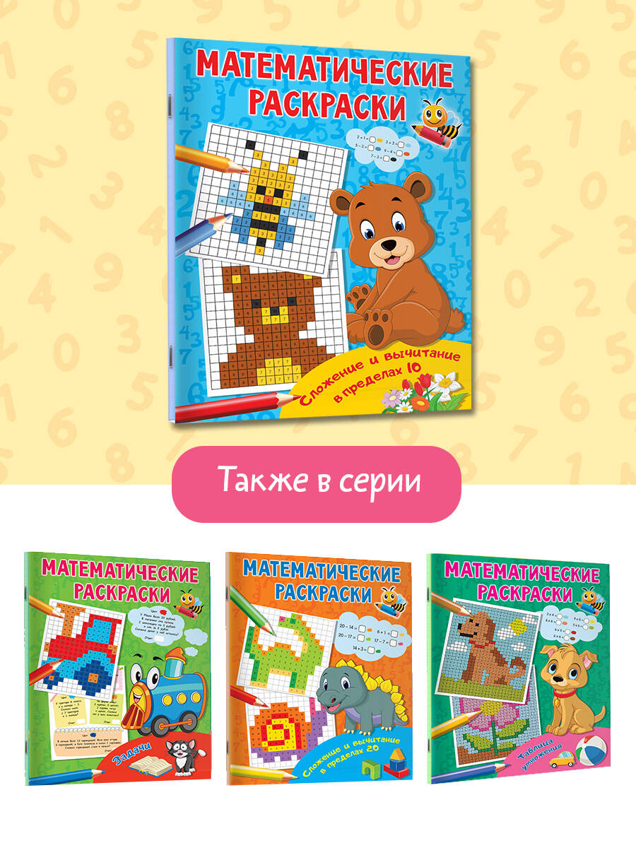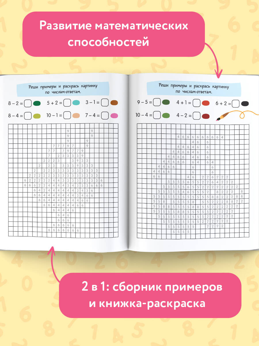 «Сложение и вычитание в пределах 10» - это одновременно и сборник примеров по математике для учеников младших классов, и замечательная книжка-раскраска. Решая примеры и раскрашивая клеточки по числам-ответам, ребёнок будет создавать красочные картинки.| Издательство | ИЗДАТЕЛЬСТВО "АСТ" |