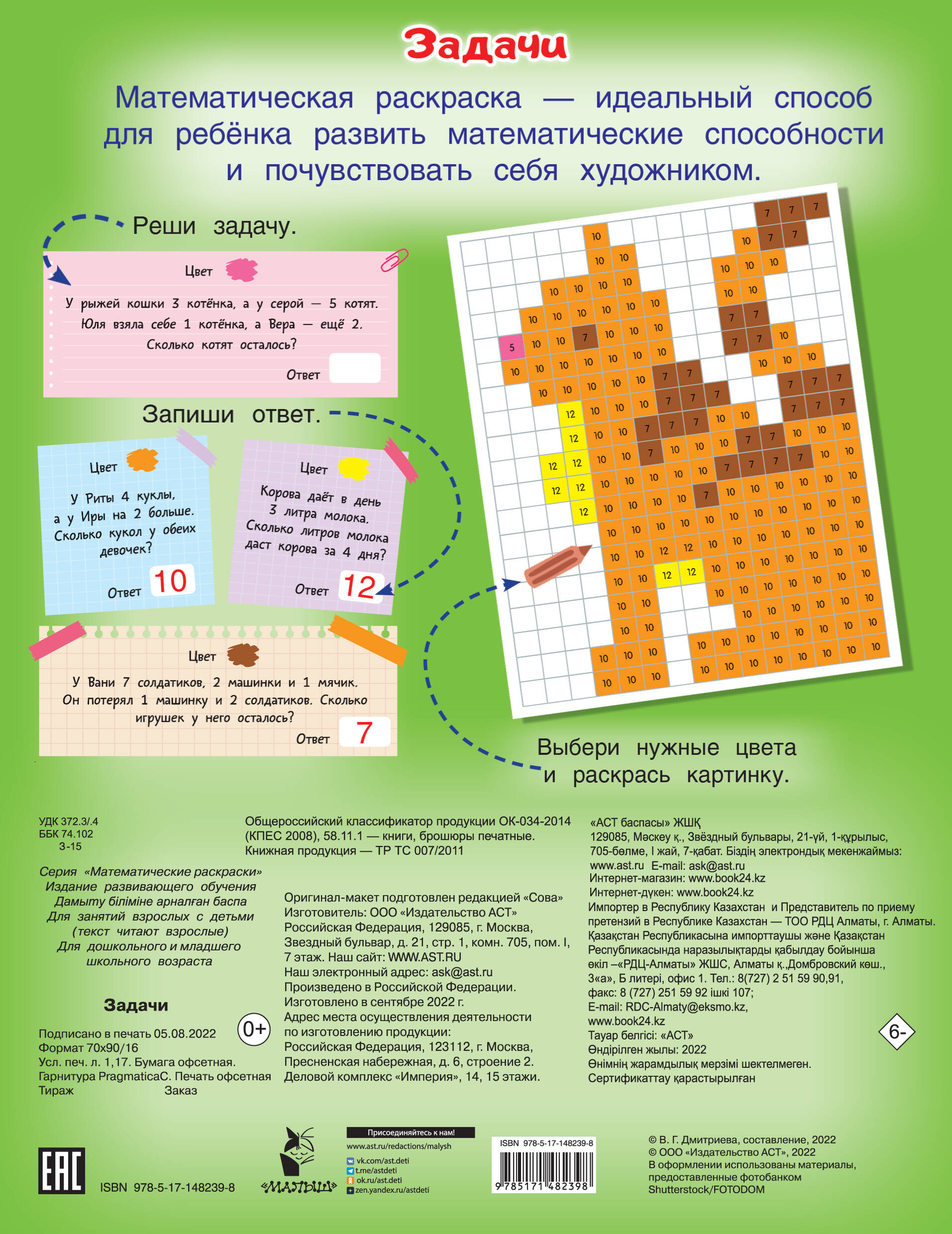 Развивающая книжка «Задачи» - это одновременно и сборник математических задач для учеников младших классов, и замечательная раскраска. Выполняя задания и раскрашивая клеточки по числам-ответам, ребёнок будет создавать красочные картинки.| Издательство | ИЗДАТЕЛЬСТВО "АСТ" |