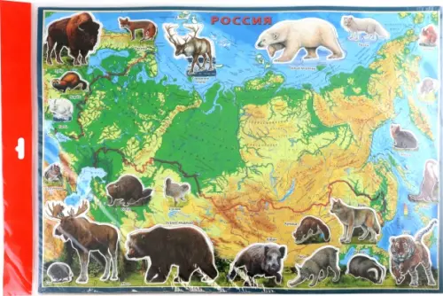 Перед вами уникальный пазл с физической картой России Нестандартные элементы пазла вырезаны по границам физико-географических стран и по контурам животных.