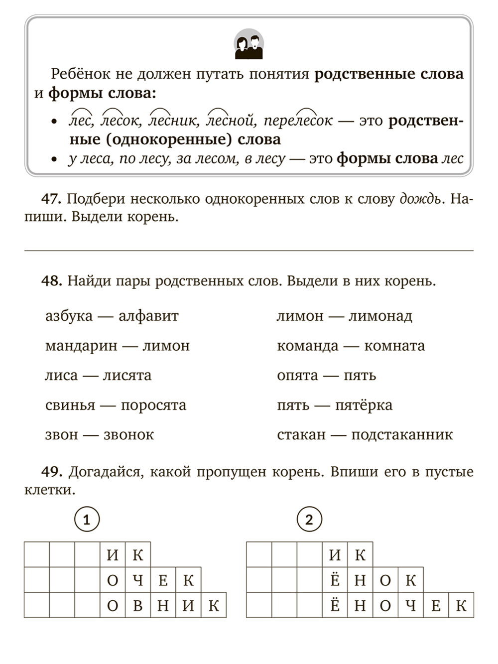 Занимательные тренировочные упражнения по русскому языку для запоминания правил школьной программы с рекомендациями для родителей. 1-2 кл