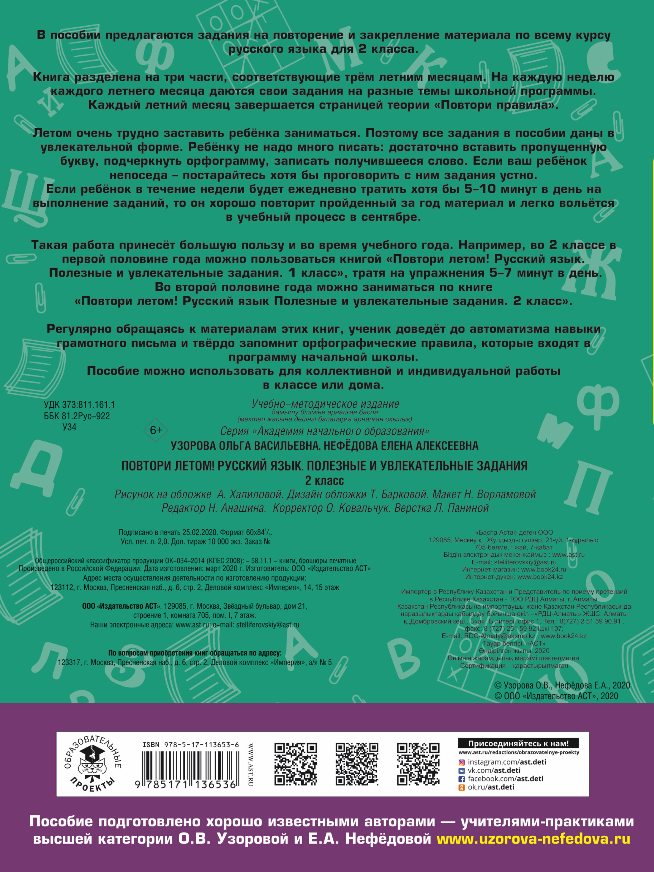 Аннотация: Повтори летом! Русский язык. Полезные и увлекательные задания. 2 класс