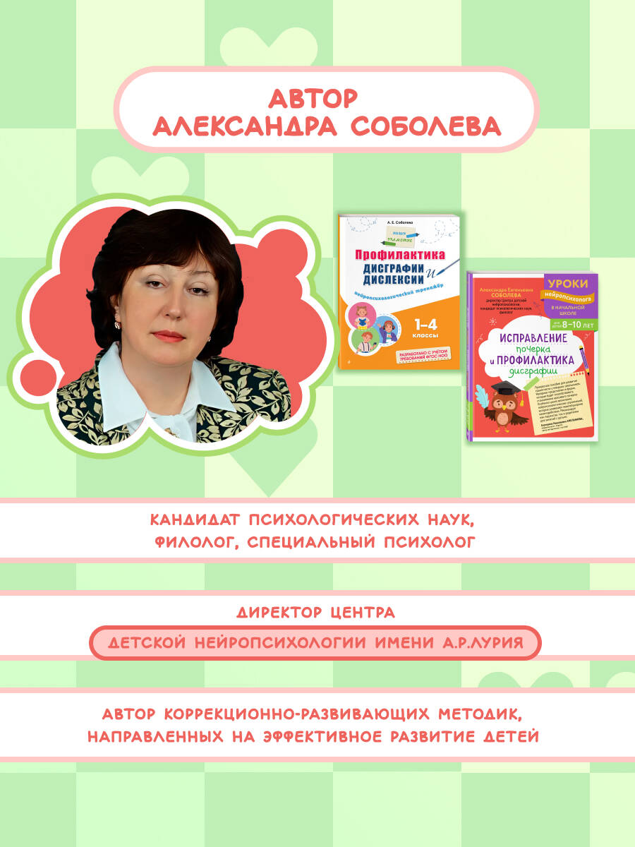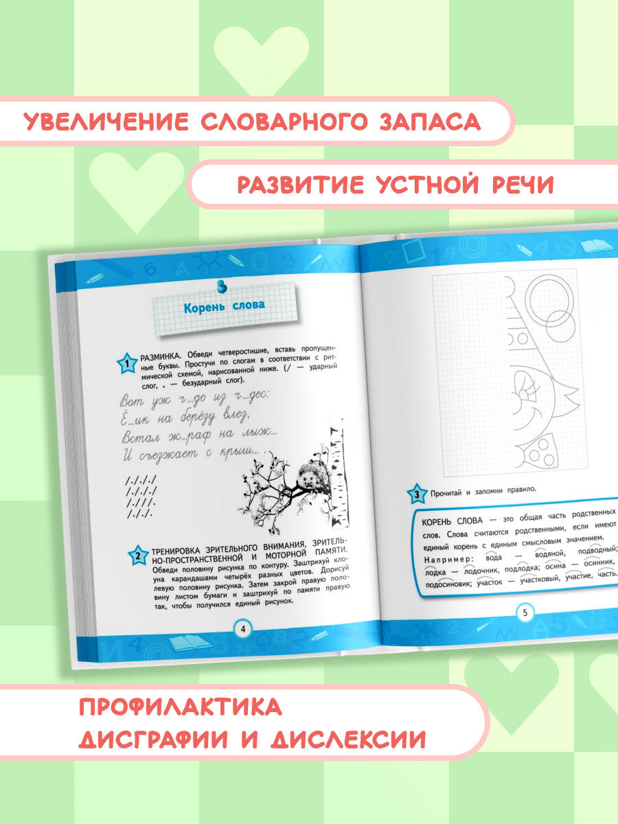 Основная цель книги, соответствующей ФГОС - повышение грамотности, развитие устной речи, увеличение словарного запаса учащихся, а также развитие высших психических функций, комплексно влияющих на профилактику и коррекцию дислексии и дисграфии. Так как в книге даны специальные приёмы, позволяющие автоматизировать применение правил в письменной речи, учащиеся станут писать грамотно, улучшат почерк, перестанут пропускать и путать буквы. В основе пособия лежит нейропсихологический подход, т. е. одновременно с задачей овладеть письмом и грамотностью в нём предусмотрены упражнения для развития внимания, пространственного представления, межполушарных взаимодействий, зрительно-моторной координации, объёма зрительной и двигательной памяти, механизма произвольности речи. Пособие поможет: • научиться писать грамотно; • развить орфографическую зоркость; • улучшить почерк; • справиться с проблемами в обучении.| Издательство | ООО "Издательство "Эксмо" |