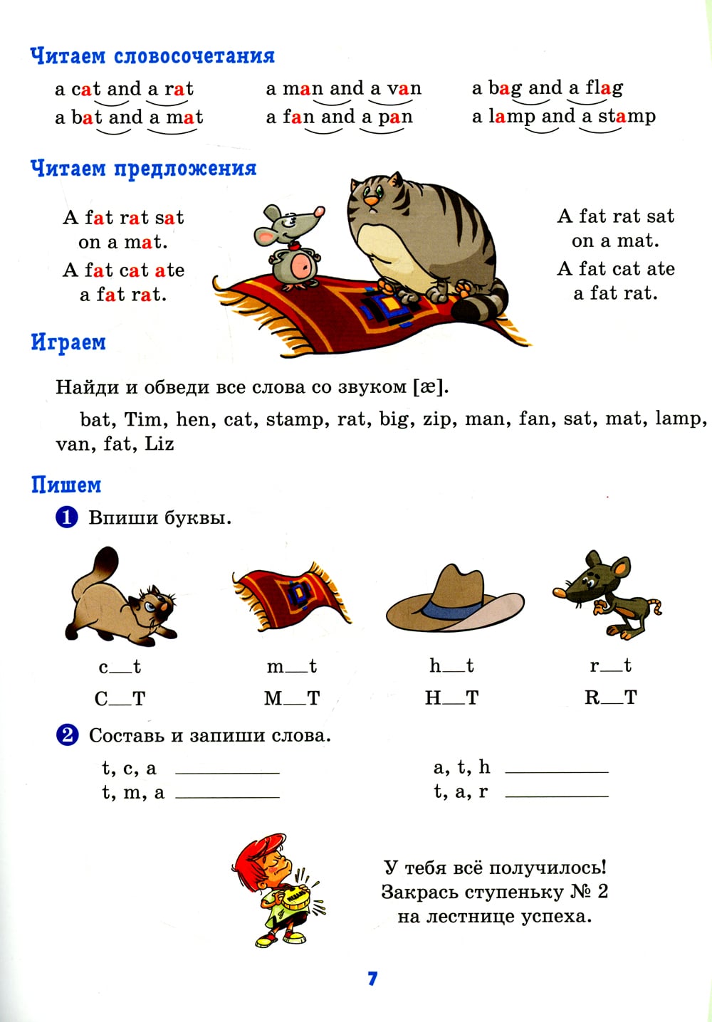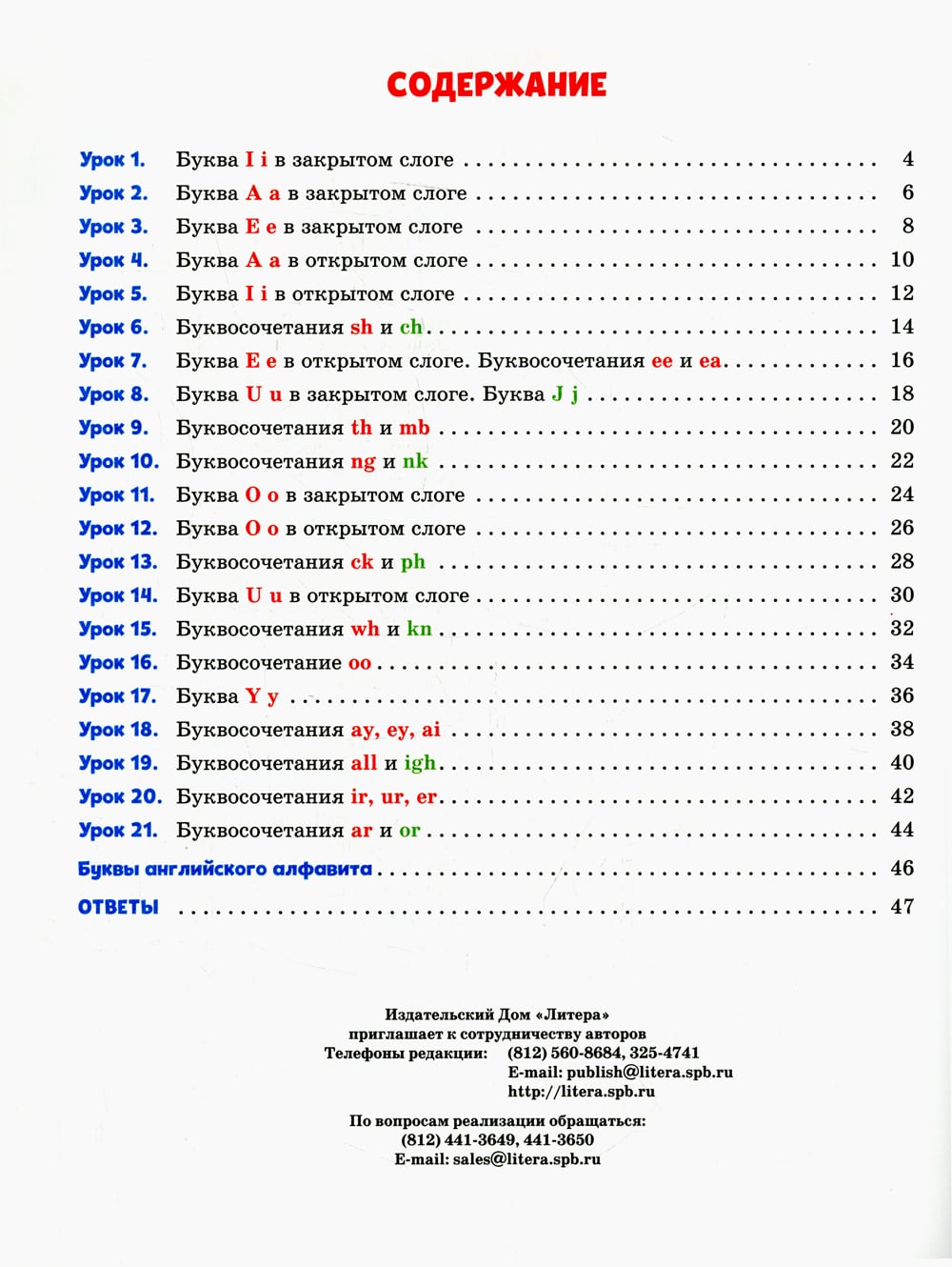 Дорогой друг! В книге, которую ты держишь в руках, собраны весёлые и полезные упражнения, которые помогут тебе научиться читать и писать по-английски, а также разбираться в знаках английской транскрипции. Выполняй интересные задания, следуя инструкциям и подсказкам. Обязательно читай вслух! После каждого пройденного урока закрашивай на лестнице успеха по одной ступеньке - так ты увидишь, как приближаешься к своей цели - научиться читать и писать.| Издательство | ИД ЛИТЕРА |