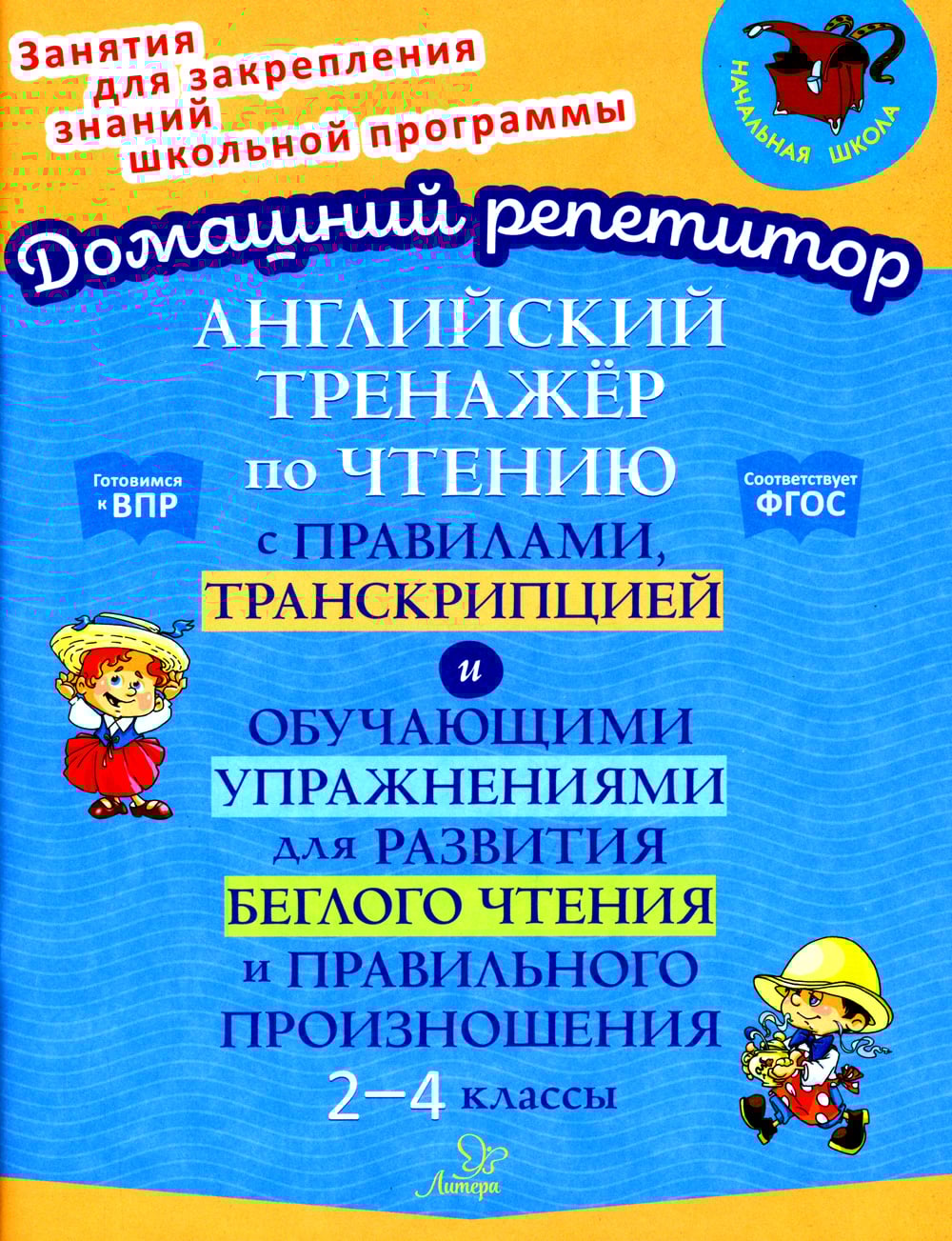 Английский тренажер по чтению с правилами, транскрипцией и обучающими упражнениями для развития беглого чтения и правильного произношения. 2-4 кл