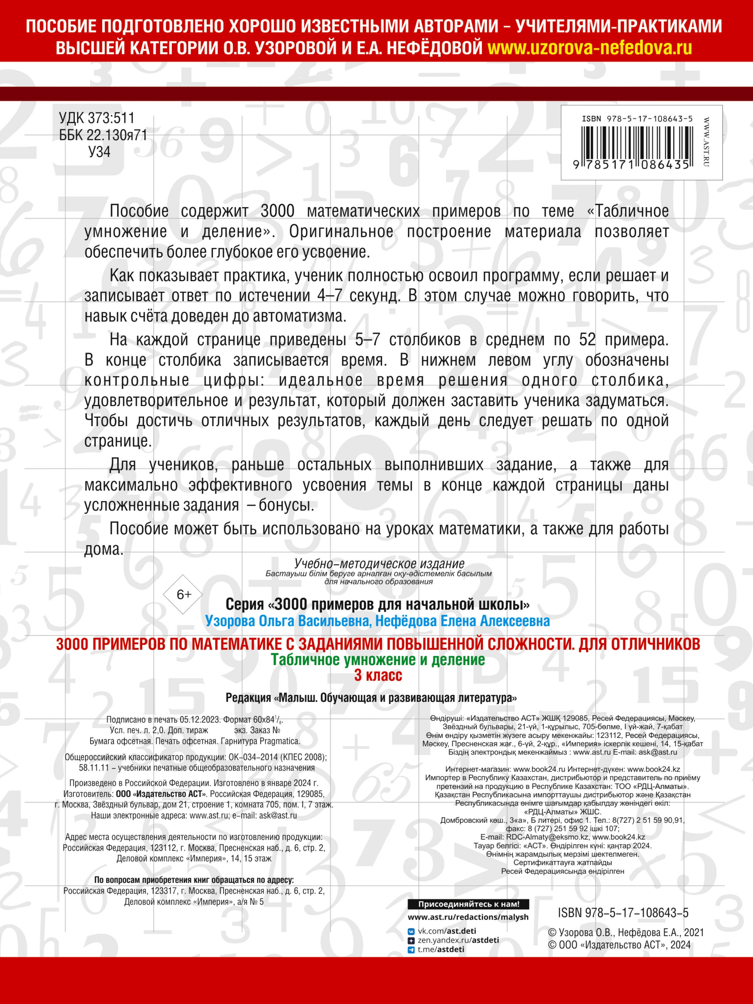 Пособие известных педагогов-практиков, авторов самых издаваемых учебников и учебных пособий в России О.В. Узоровой и Е.А. Нефёдовой содержит примеры по теме «Табличное умножение и деление». Оригинальное построение материала позволяет обеспечить более глубокое его усвоение. Для учеников, быстрее других выполнивших задания, а также для максимально эффективного усвоения темы в конце каждой страницы даны усложненные задания-«бонусы». Пособие можно использовать на уроках математики, а также для самостоятельной работы дома.