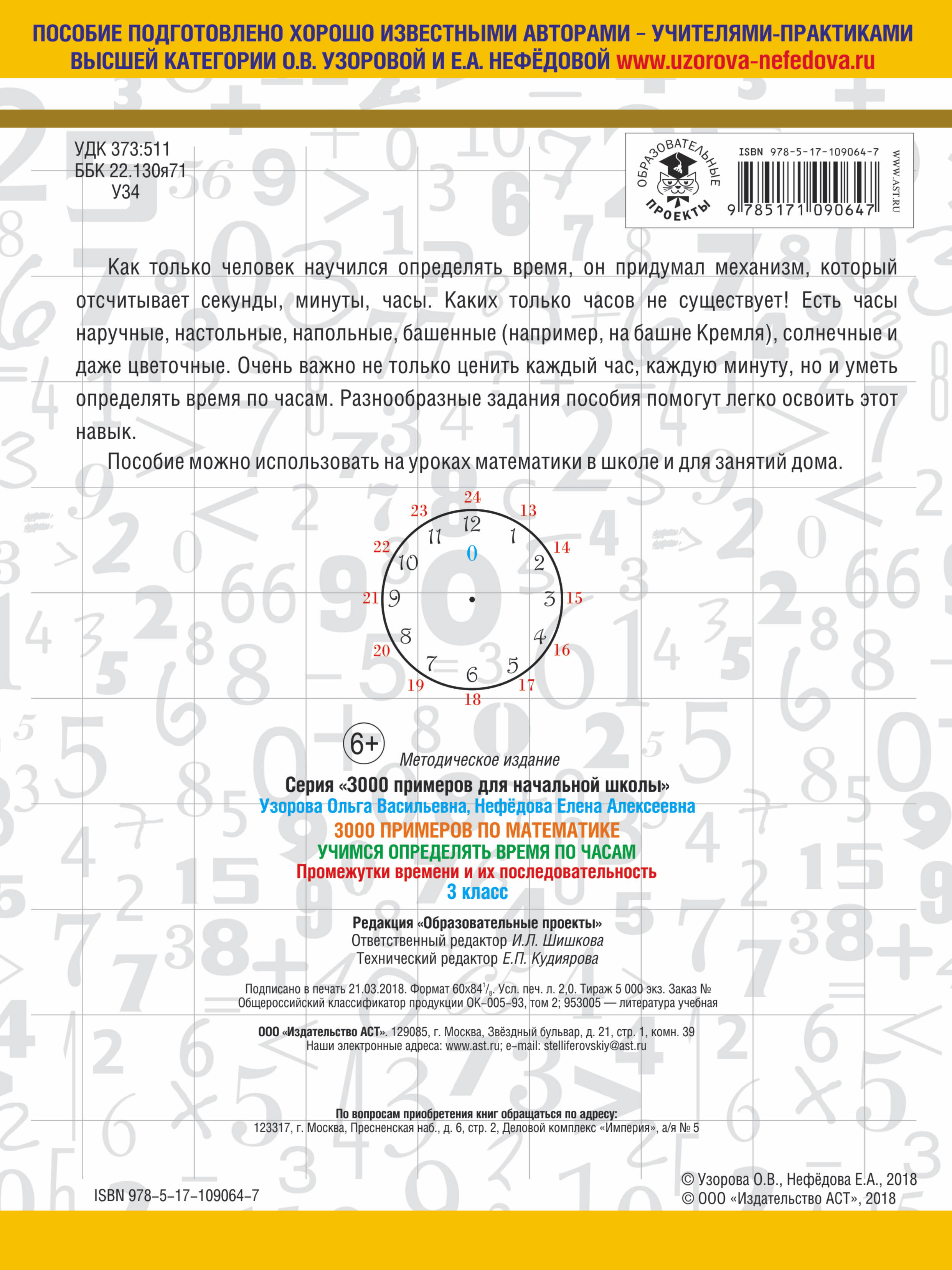 Аннотация: 3000 примеров по математике. Учимся определять время по часам. 3 класс. Промежутки времени и их последовательность.