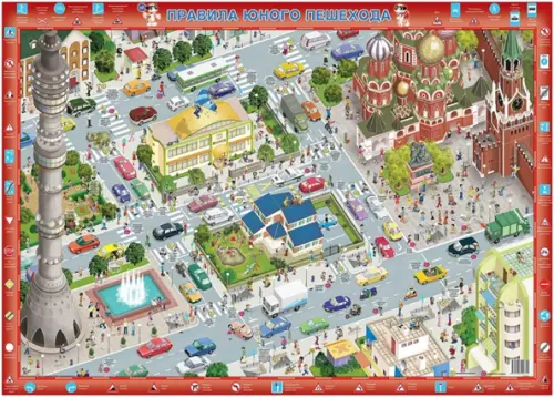 Эта красочная карта - замечательное пособие для юных пешеходов. На ней в доступной для ребенка форме отражены различные ситуации, которые могут произойти на дороге. Карта-плакат расскажет не только о безопасности движения, но и о значении дорожных знаков. Каждая ситуация на карте сопровождается текстовой сноской с подробными комментариями. Чтобы ребенок лучше запомнил правила, можно закрыть рукой текстовой комментарий к ситуации и попросить его по памяти рассказать о ней. Ни для кого не секрет, что количество машин на дорогах увеличивается с каждым годом, а вместе с тем повышается важность обучения детей правилам дорожного движения. С этой картой обучение станет доступным и понятным каждому ребенку.