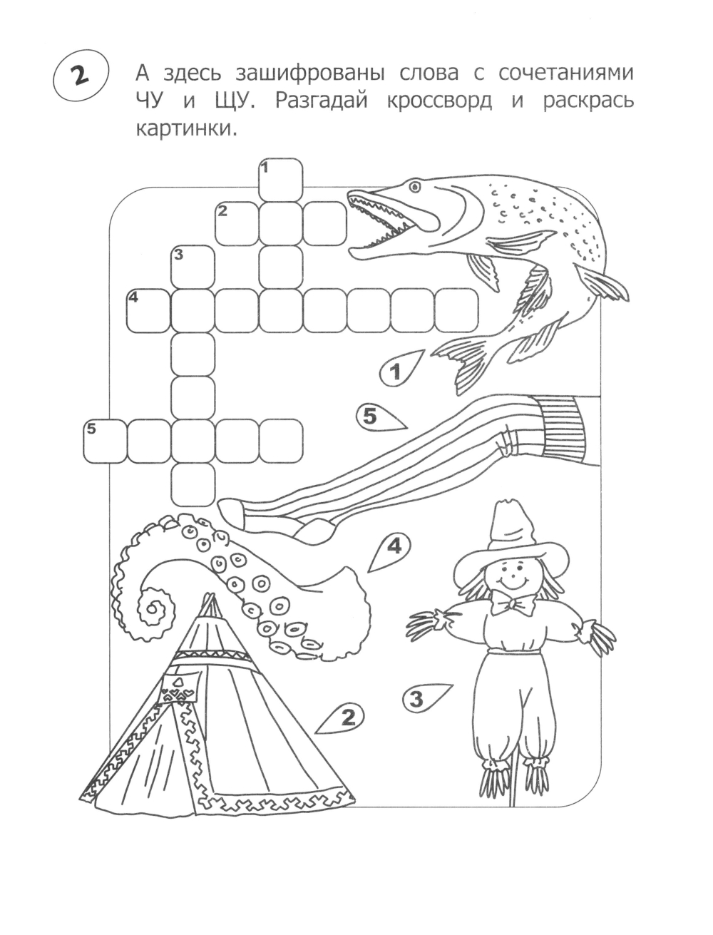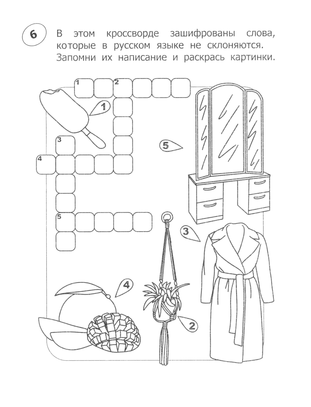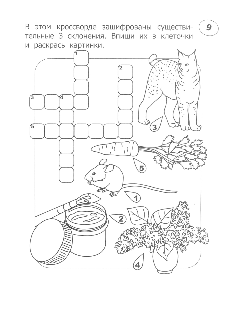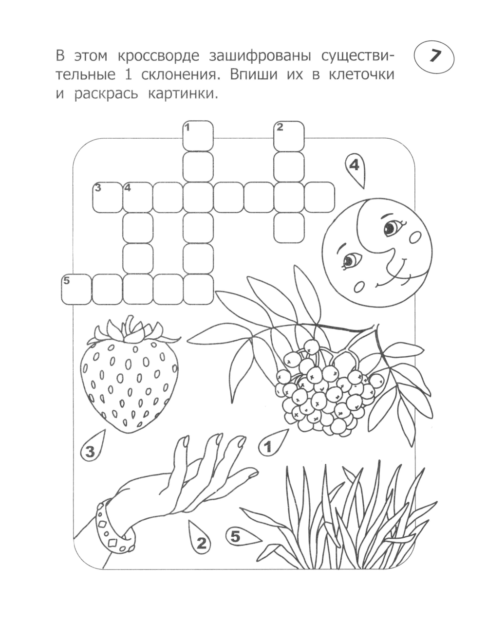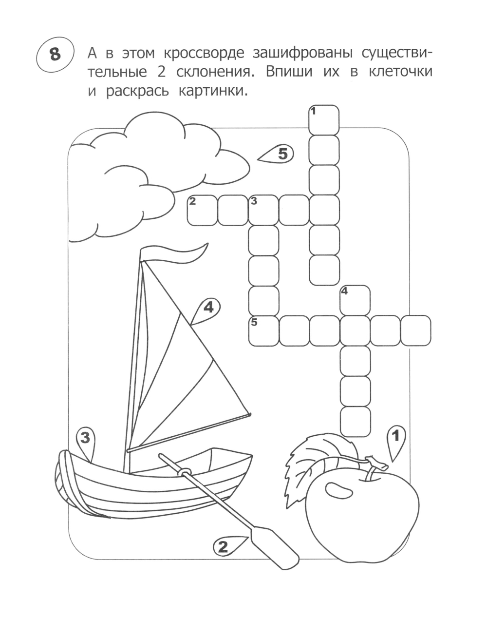 Кроссворды-раскраски по русскому языку для детей 7-10 лет
