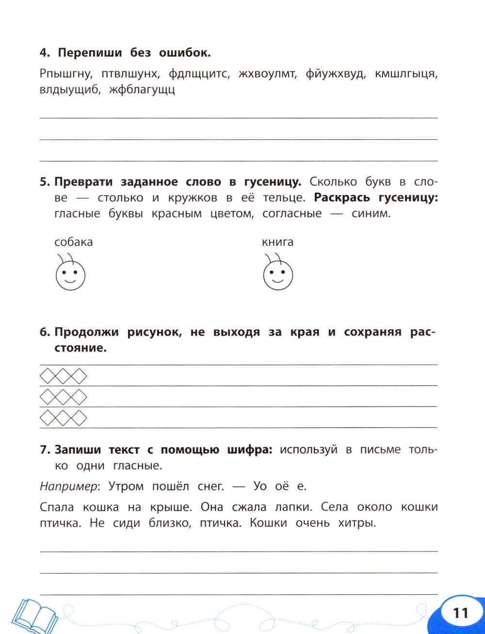 Упражнения, предложенные в сборнике, составлены с учётом созревания головного мозга ребёнка и направлены на создание предпосылок для успешного усвоения процесса формирования письма. Главная цель тренажёра - формирование зрительного восприятия, развитие зрительного внимания, усидчивости, преодоление импульсивности, закрепление образа букв, расширение словарного запаса и звуко-буквенного анализа, а также развитие графомоторных навыков, зрительно-моторной координации и самоконтроля. Пособие ориентировано на детей младшего школьного возраста.