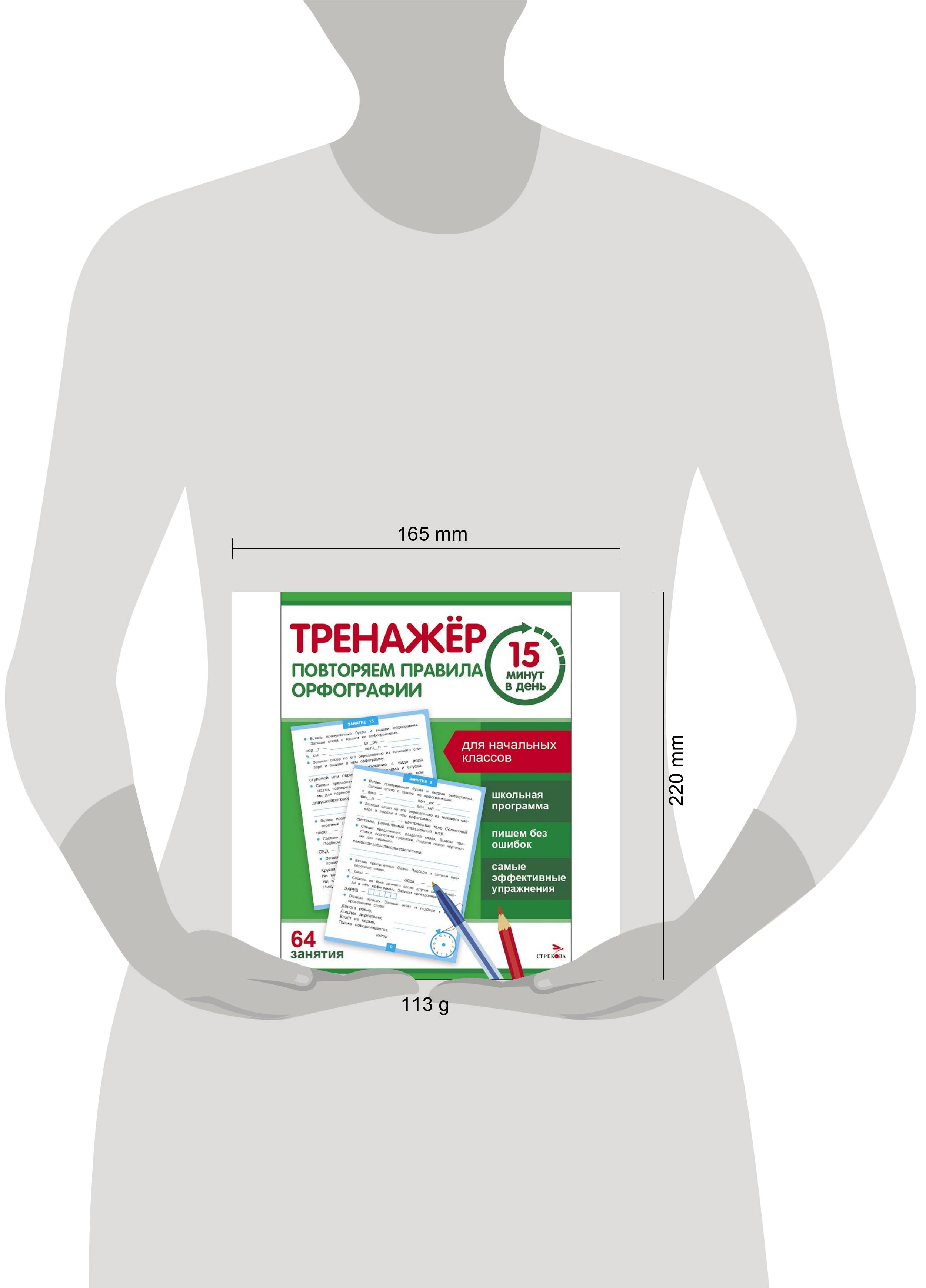 Этот тренажёр предназначен для дополнительных занятий в начальной школе. В нём представлены задания на все орфограммы, изучаемые в 1-4 классах. Пособие направлено на формирование орфографической зоркости и расширение словарного запаса учащихся. На нарисованных часах можно отмечать время, за которое были сделаны задания. Это даст учащимся дополнительную мотивацию для выполнения упражнений. Занимаясь всего 15 минут в день, дети не будут чувствовать переутомления, и концентрация внимания останется на высоком уровне.| Издательство | Стрекоза Торговый дом ООО |