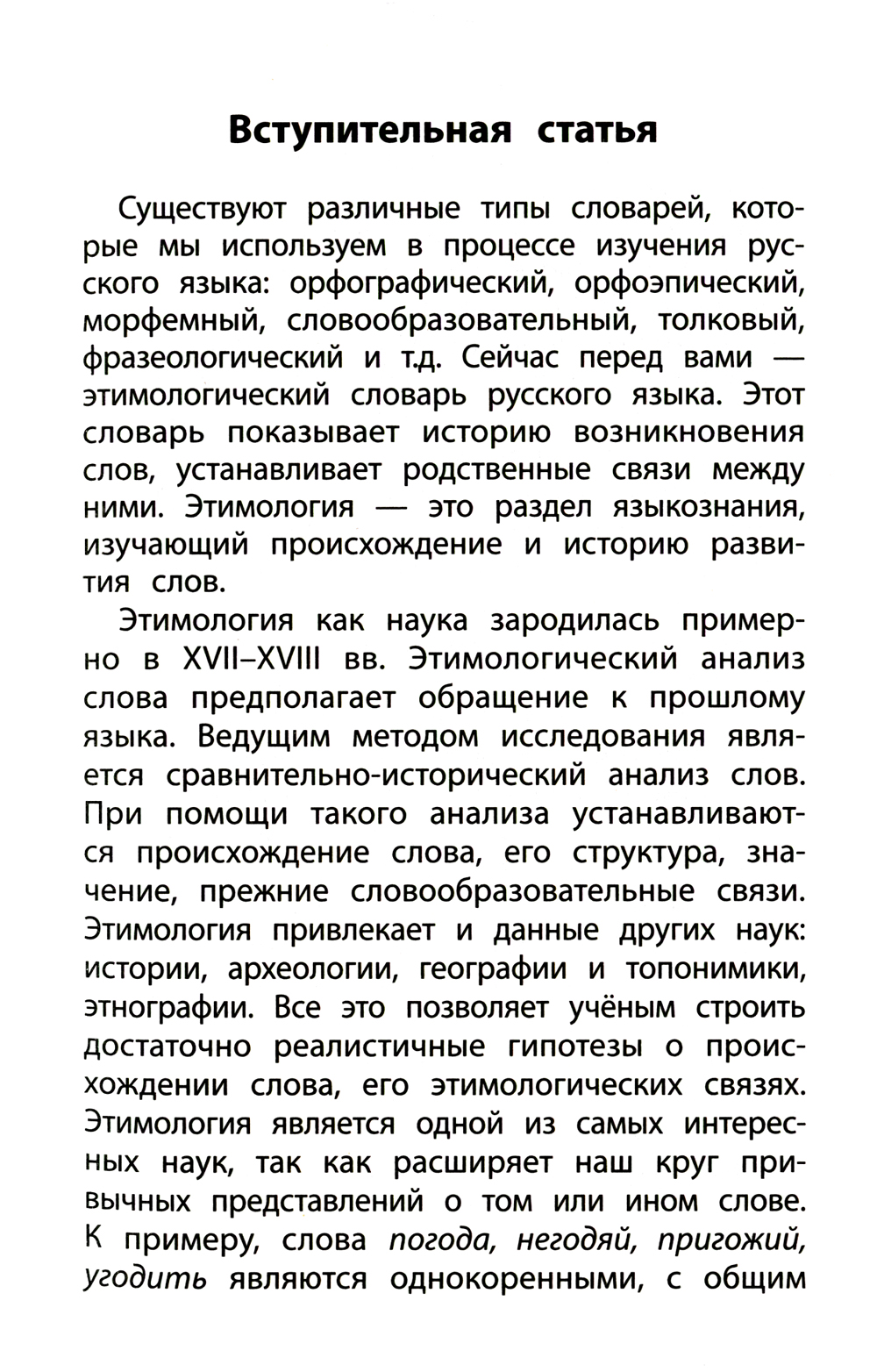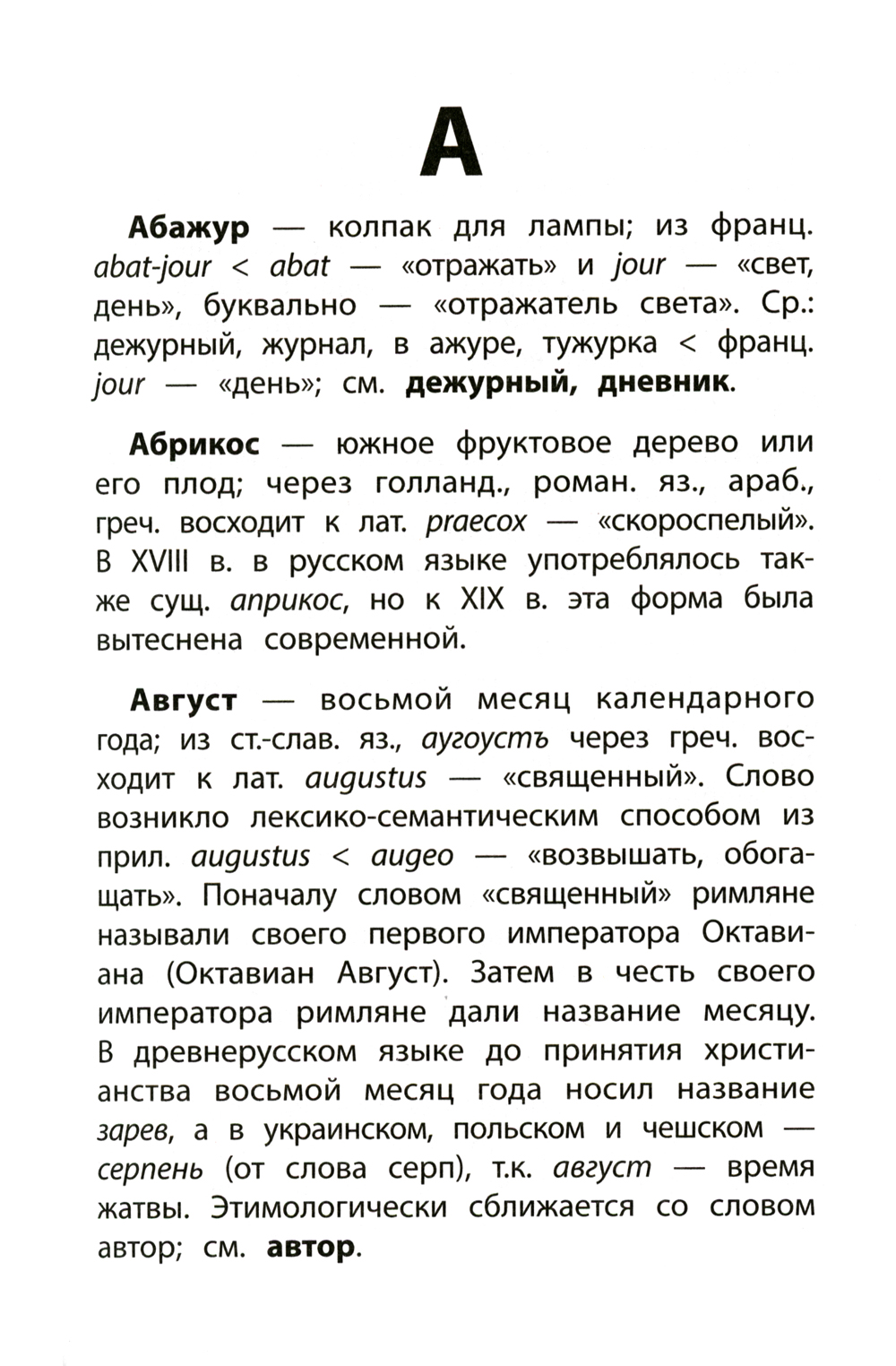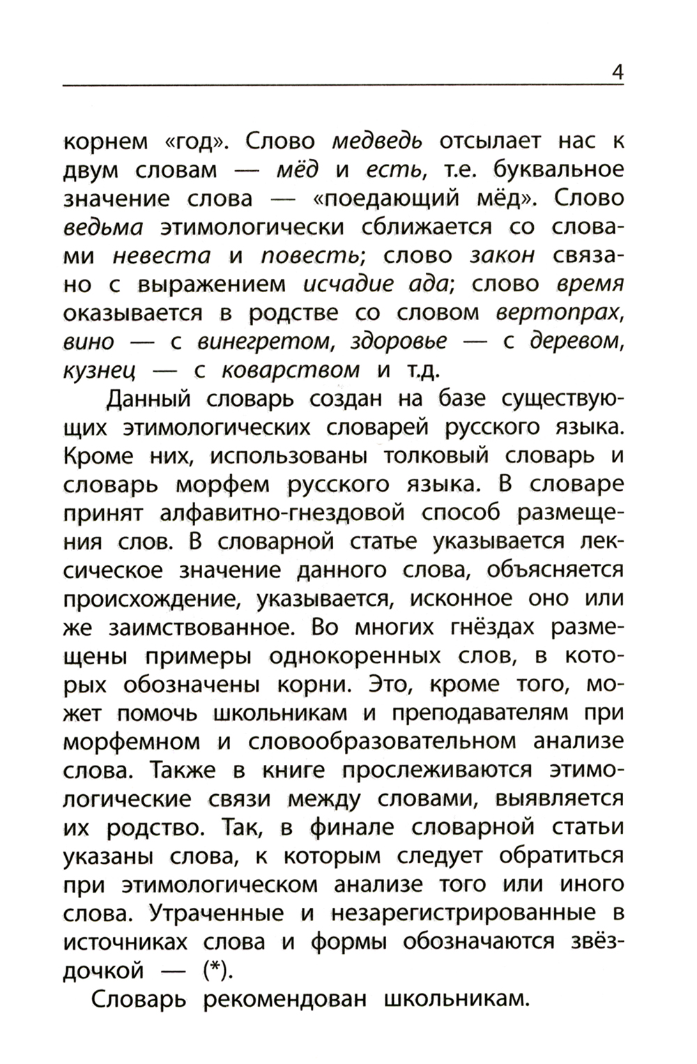 Данный словарь дает точные, подробные ответы на вопросы о происхождении слов в русском языке. В интересной и доступной форме представлена история слов, описаны исторические изменения их значений, написания. Словарная статья построена алфавитно-гнездовым способом, прослеживаются этимологические связи между словами, по возможности дан ряд однокоренных слов. Словарь является необходимым справочником для школьников. Также книга может быть интересна самому широкому кругу читателей.