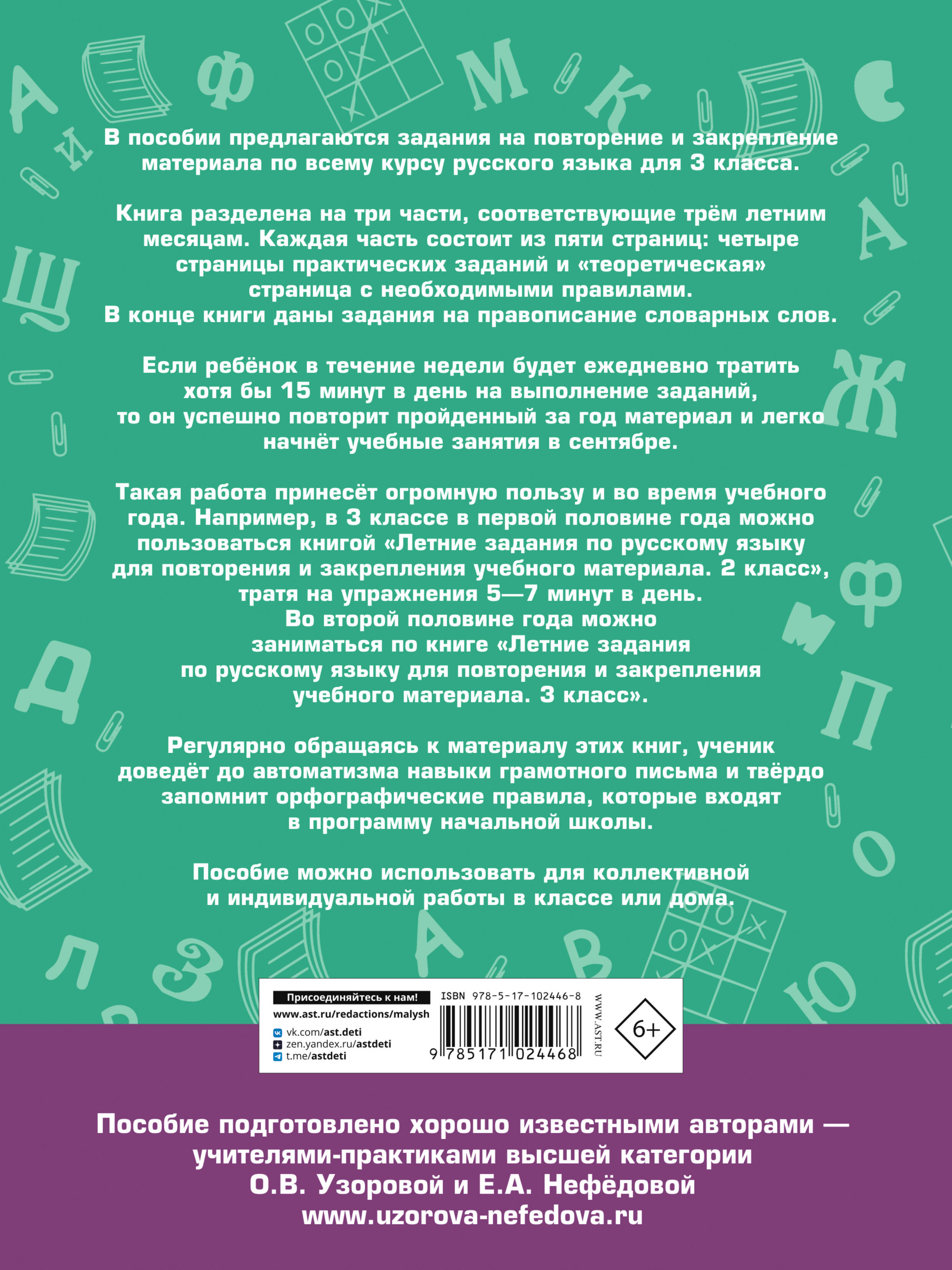 Аннотация: Летние задания по русскому языку для повторения и закрепления учебного материала. 3 класс