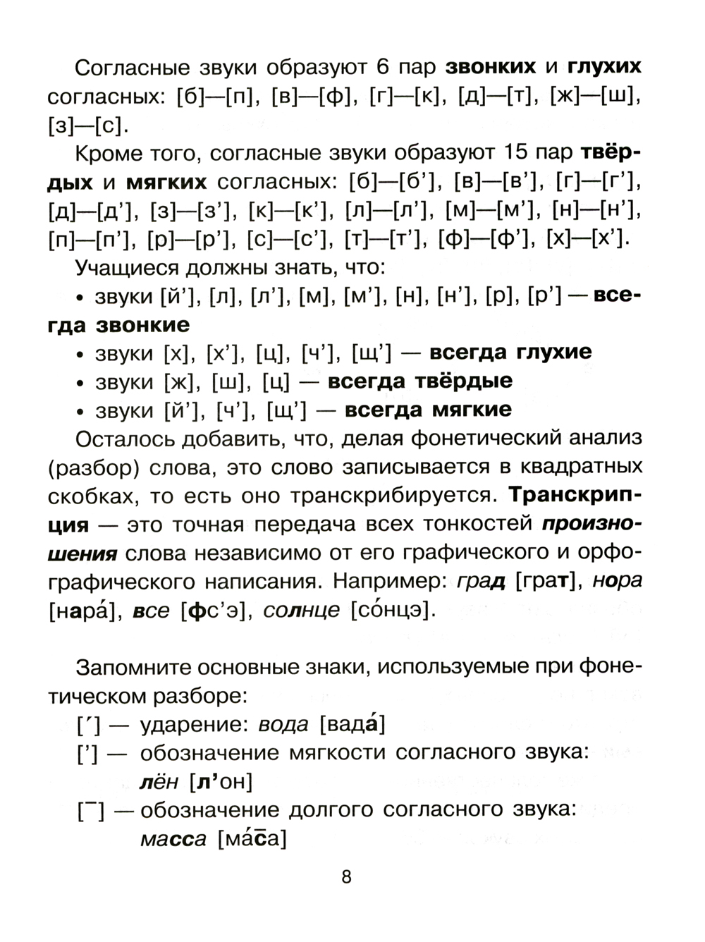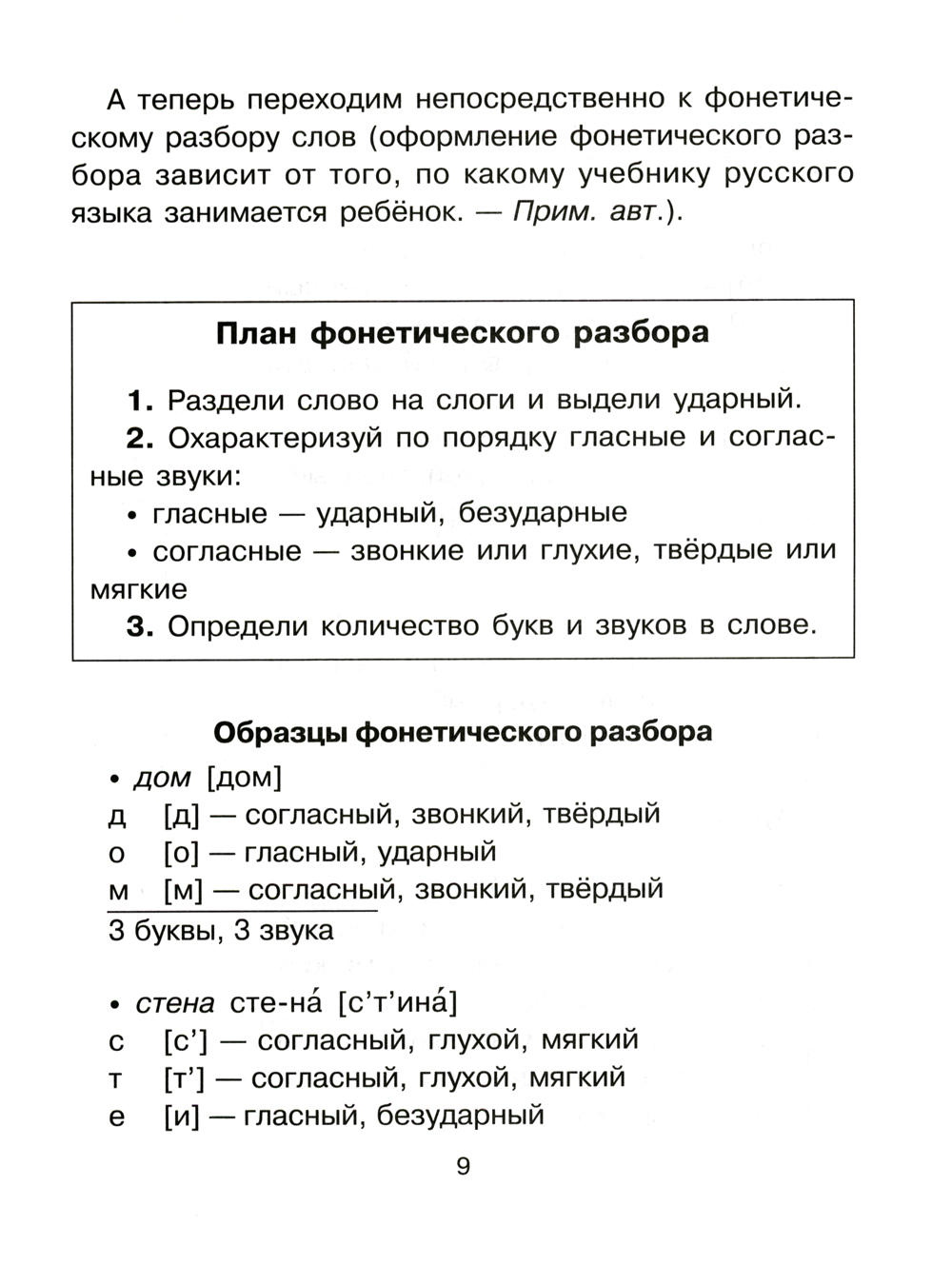 Если вы столкнулись с трудностями при выполнении звуко-буквенного (или фонетического) разбора слов, разбора слов по составу (или морфемного), морфологического разбора и разбора простого предложения, то считайте, что эта книга написана для вас. В ней вы найдёте краткое изложение основных теоретических понятий, связанных с той или иной темой, планы всех видов разбора и многочисленные образцы (примеры) их выполнения и оформления. Кроме того, в пособие включены упражнения, которые вы должны сделать самостоятельно. В конце книги мы поместили раздел «Проверь себя!». В нём приведены ответы на все задания. Так что обязательно проверьте, правильно ли вы выполнили их. Надеемся, что посильную помощь в этой работе вам смогут оказать и ваши родители. Обязательно освойте данные виды разбора, чтобы в дальнейшем вам было легче выполнять другие виды разбора, а именно: орфографический и лексический разбор слов, синтаксический и пунктуационный разбор сложных предложений.| Издательство | ИД ЛИТЕРА |