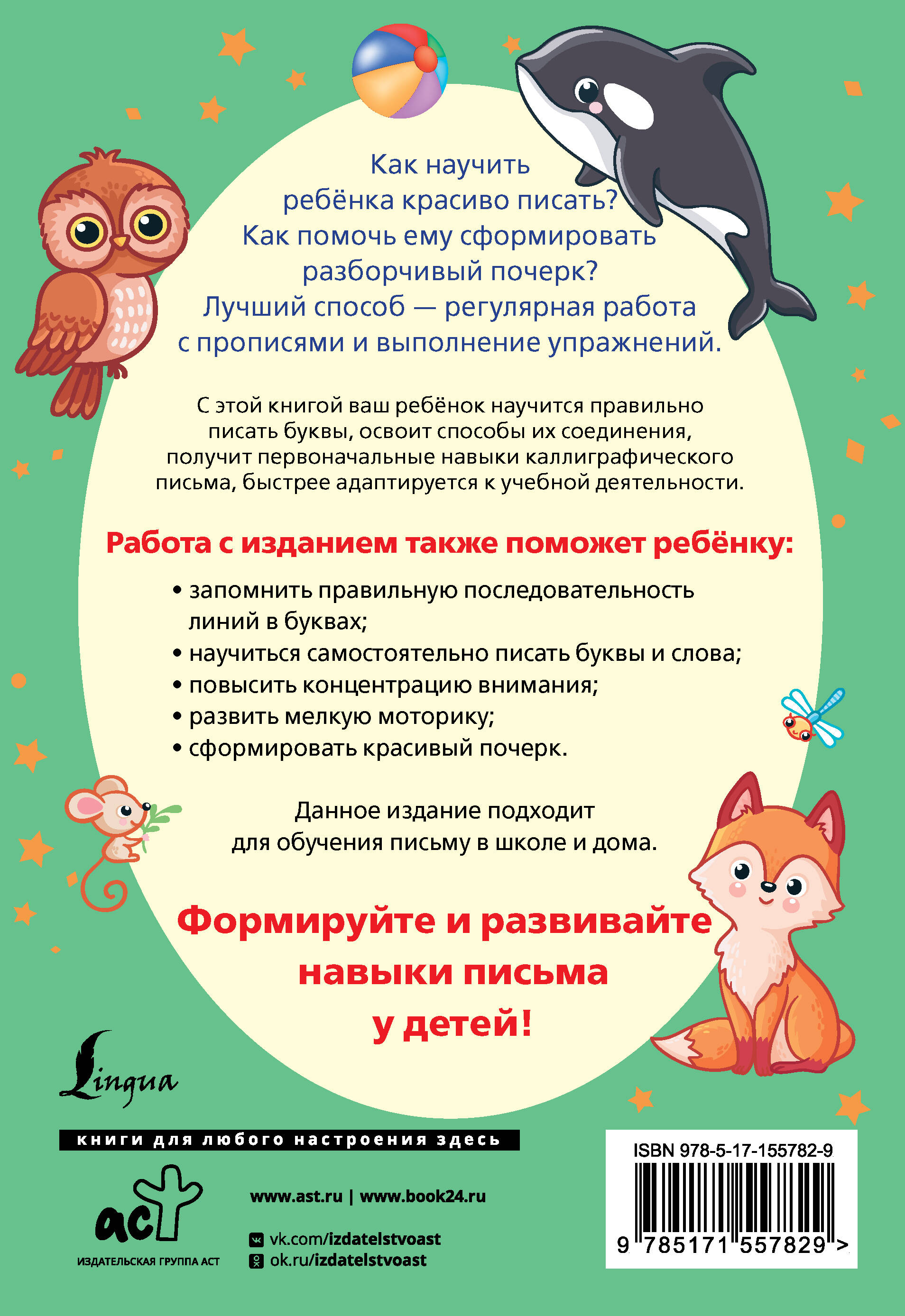 Анна Валерьевна Тарасова - лингвист, преподаватель с многолетним опытом работы, автор учебных пособий для детей и взрослых. Настоящее издание поможет развить и закрепить навык письма на английском языке у младших школьников. Используя эти прописи, дети научатся писать правильно и аккуратно, запомнят алфавит и важные буквосочетания, выучат первые слова на английском языке. Прописи удобного формата предназначены для учеников начальной школы, преподавателей и родителей. С этим изданием можно работать на уроках, дополнительных занятиях или дома. Прописи соответствуют требованиям ФГОС (Федерального государственного образовательного стандарта) и подходят к любым учебникам английского языка.| Издательство | ИЗДАТЕЛЬСТВО "АСТ" |