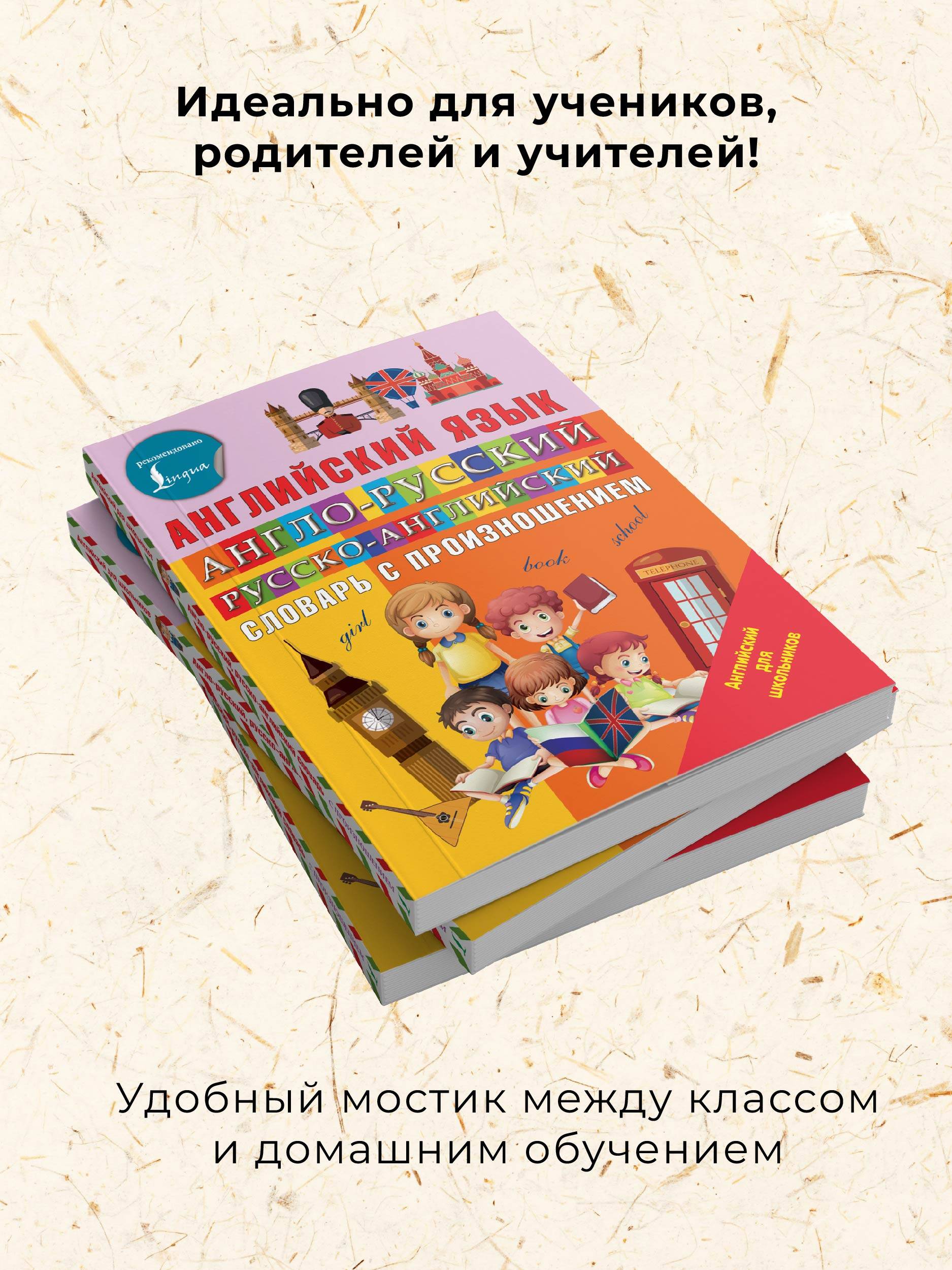 В серию "Английский для школьников" входят пособия по грамматике, тренажеры для учащихся начальной школы. "Англо-русский русско-английский словарь с произношением" - новая книга Виктории Державиной, известного автора пособий и словарей для школьников и взрослых, изучающих английский язык. В словаре дается транскрипция (в англо-русской части - к заголовочным словам, а в русско-английской - к переводам), выполненная в знаках международной фонетической системы, а также средствами русского алфавита. Словарь предназначен для учащихся 1-4 классов и включает объем лексики, соответствующий учебной программе начальной школы.