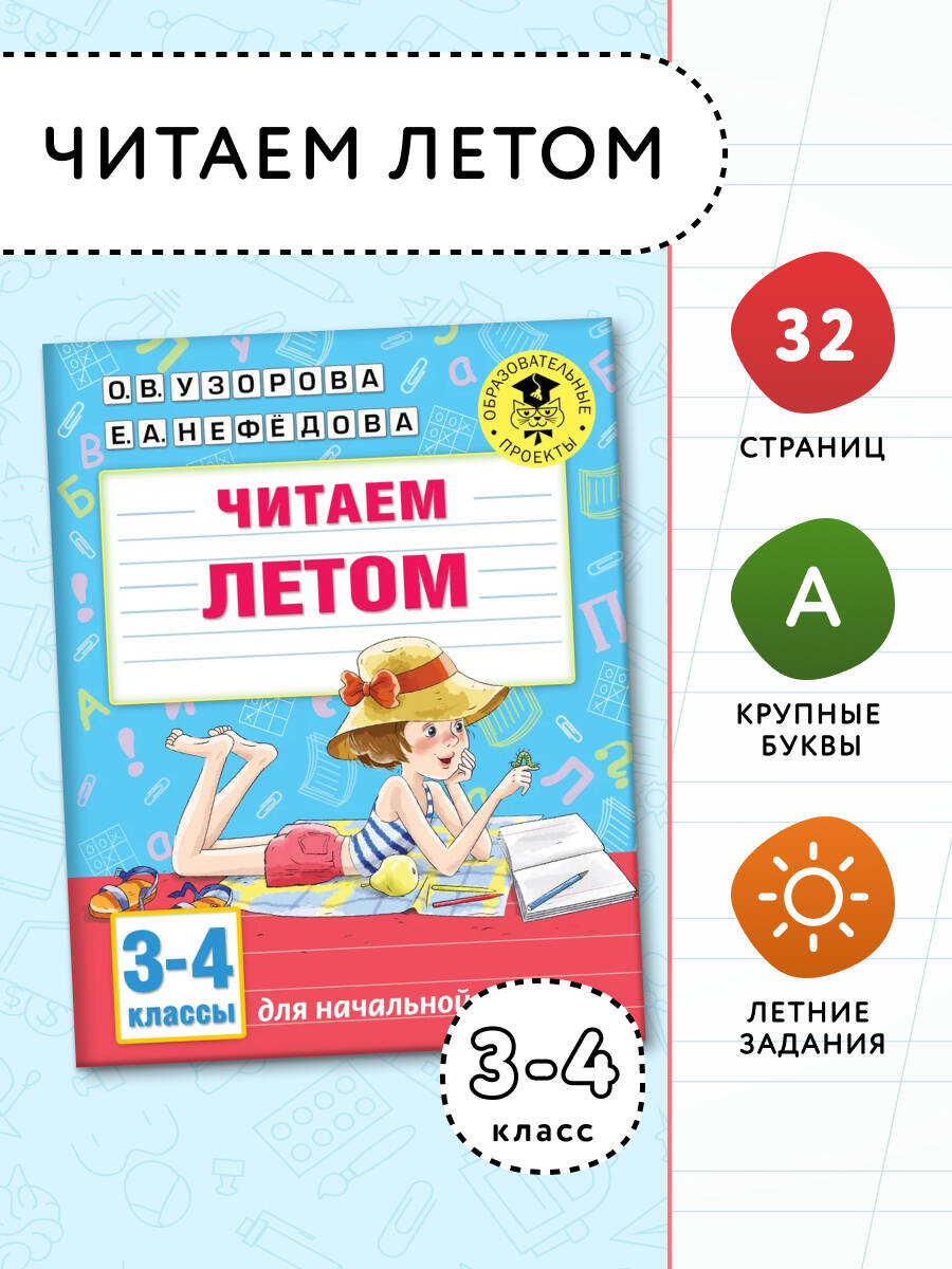 В тетрадь ""Читаем летом. 3-4 классы"" можно записать все произведения, которые ребёнок прочитал за лето. Тетрадь поделена на тематические разделы: «Русские народные сказки», «Пословицы и поговорки», «Стихотворения о природе», «Рассказы о животных» и другие, и ученик лишь записывает прочитанное в нужный раздел. Во-первых, это удобно самому ребёнку, так как в тетради зафиксировано, всё, что он прочитал за три летних месяца, и ему не нужно вспоминать это, когда спросит учитель. Во-вторых, тетрадь «Читаем летом» подписывается учеником и, заполненную её можно сдать учителю в начале учебного года и получить хорошую оценку по литературному чтению.| Издательство | ИЗДАТЕЛЬСТВО "АСТ" |
