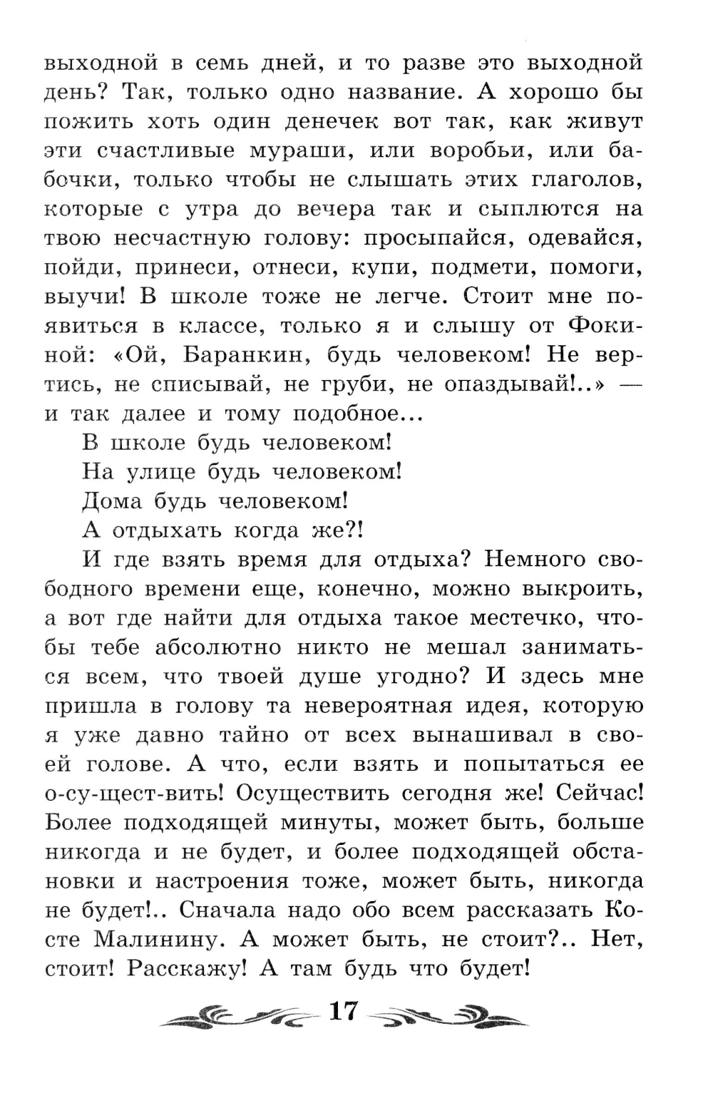 Самая известная повесть В. Медведева рассказывает о необыкновенных, смешных и, возможно, поучительных приключениях двух друзей - школьников Юры Баранкина и Кости Малинина. Однажды заядлые двоечники решили, что быть человеком слишком уж хлопотно. А что, если превратиться в воробьев - вот уж у кого каждый день воскресенье! Сообразительный Баранкин даже придумал инструкцию по превращению. Но скоро стало понятно, что жизнь воробьев не такая уж легкая...| Издательство | Феникс |