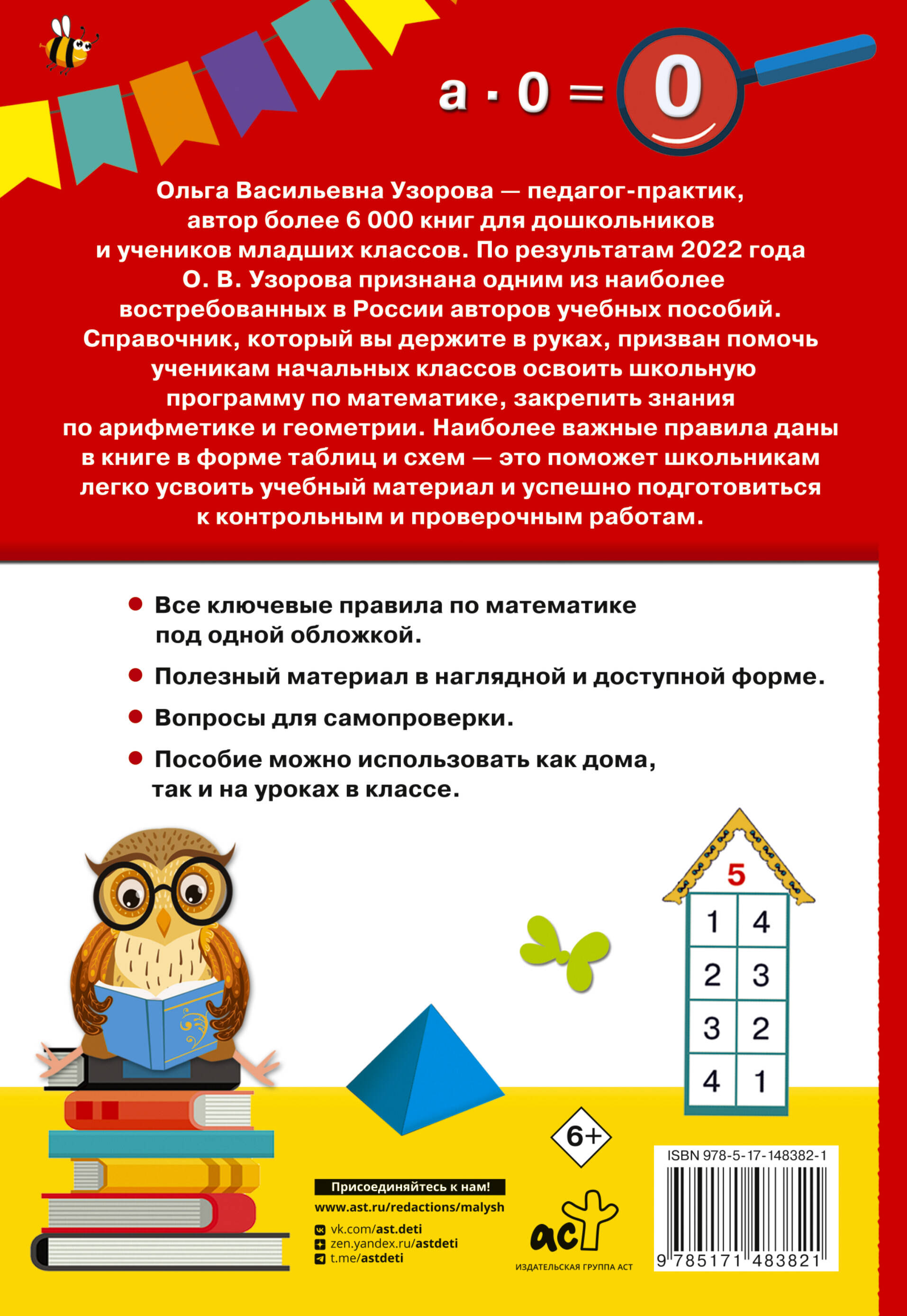 «Математика. 1−4 классы» - это пособие по математике для учащихся начальной школы, основанное на авторской методике О. В. Узоровой. Все правила по математике даны в книге в виде цветных схем и таблиц. Учебный материал, представленный в табличной форме, нагляден и прост для понимания, а цветовое оформление облегчает запоминание информации и делает процесс обучения эффективным.| Издательство | ИЗДАТЕЛЬСТВО "АСТ" |