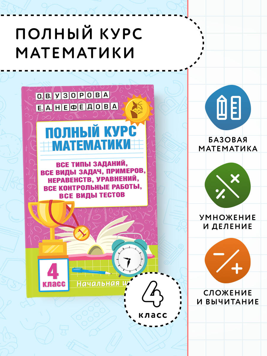 Полный курс математики. 4 класс: все типы заданий, все виды задач, примеров, неравенств, все контрольные работы, все виды тестов