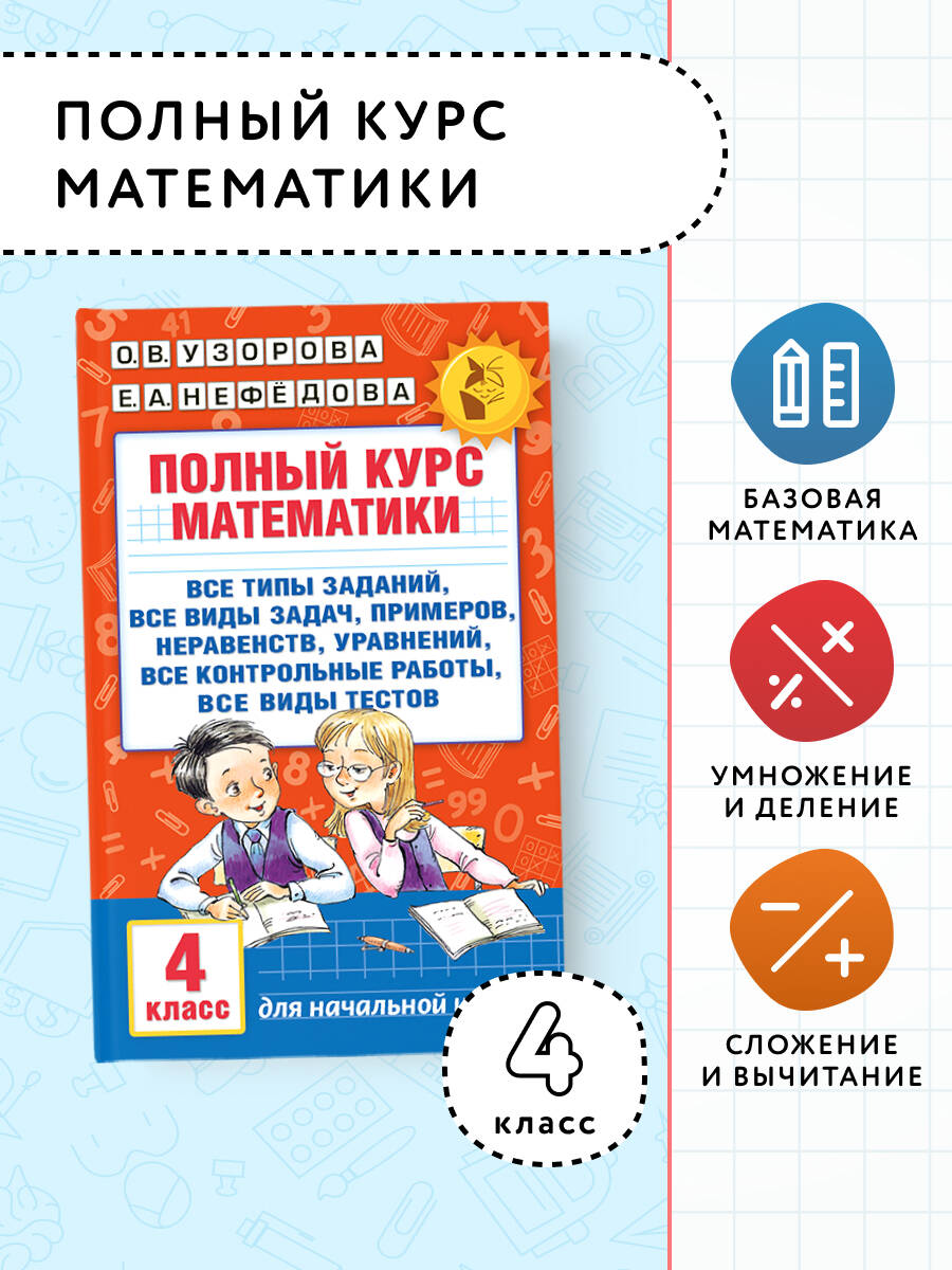 Полный курс математики. 4 класс: все типы заданий, все виды задач, примеров, неравенств, все контрольные