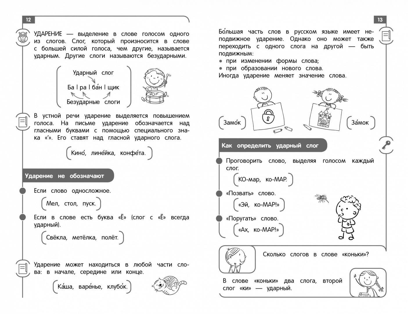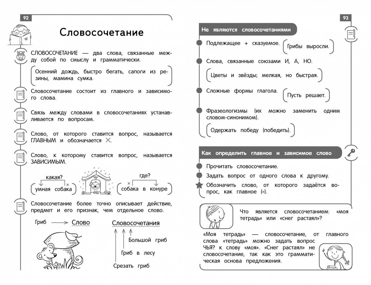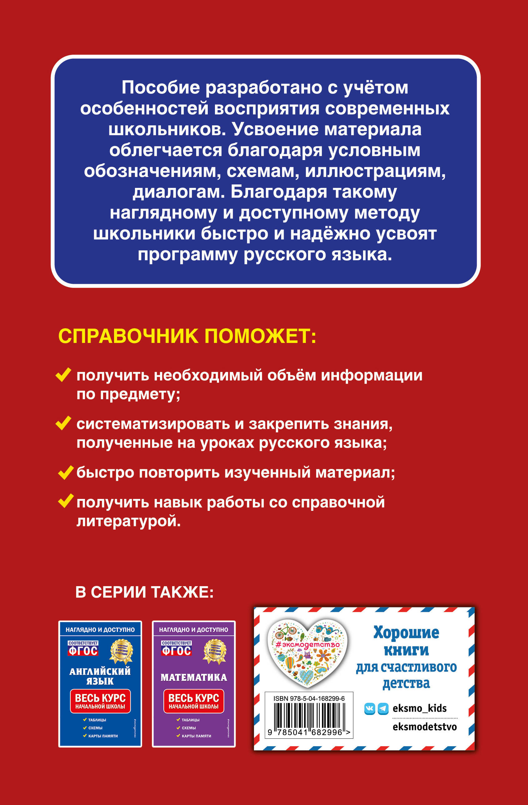 Благодаря современной и лаконичной подаче материала справочник очень практичен, удобен и прост в использовании. В пособии применяются различные формы структуризации материала: таблицы, карты памяти, рисунки-схемы. Элементы современного гаджета - значки навигации, диалоги - значительно облегчают поиск и усвоение информации. Схема «вопрос-ответ» помогает ученику выявить проблемную область и оперативно восполнить пробел в знаниях. В справочнике представлен весь материал по русскому языку за курс начальной школы. Разработано в соответствии с последними требованиями ФГОС начального общего образования.| Издательство | ООО "Издательство "Эксмо" |
