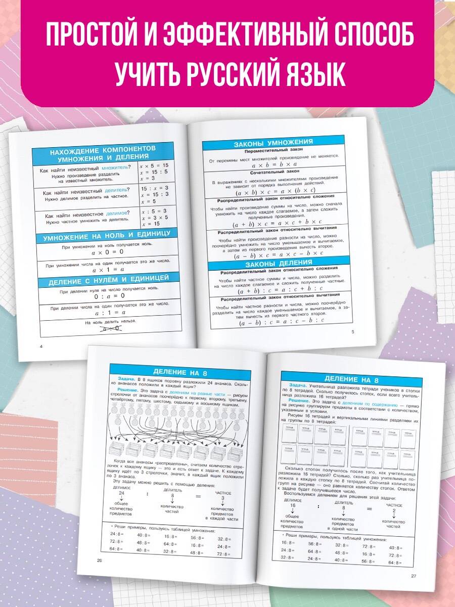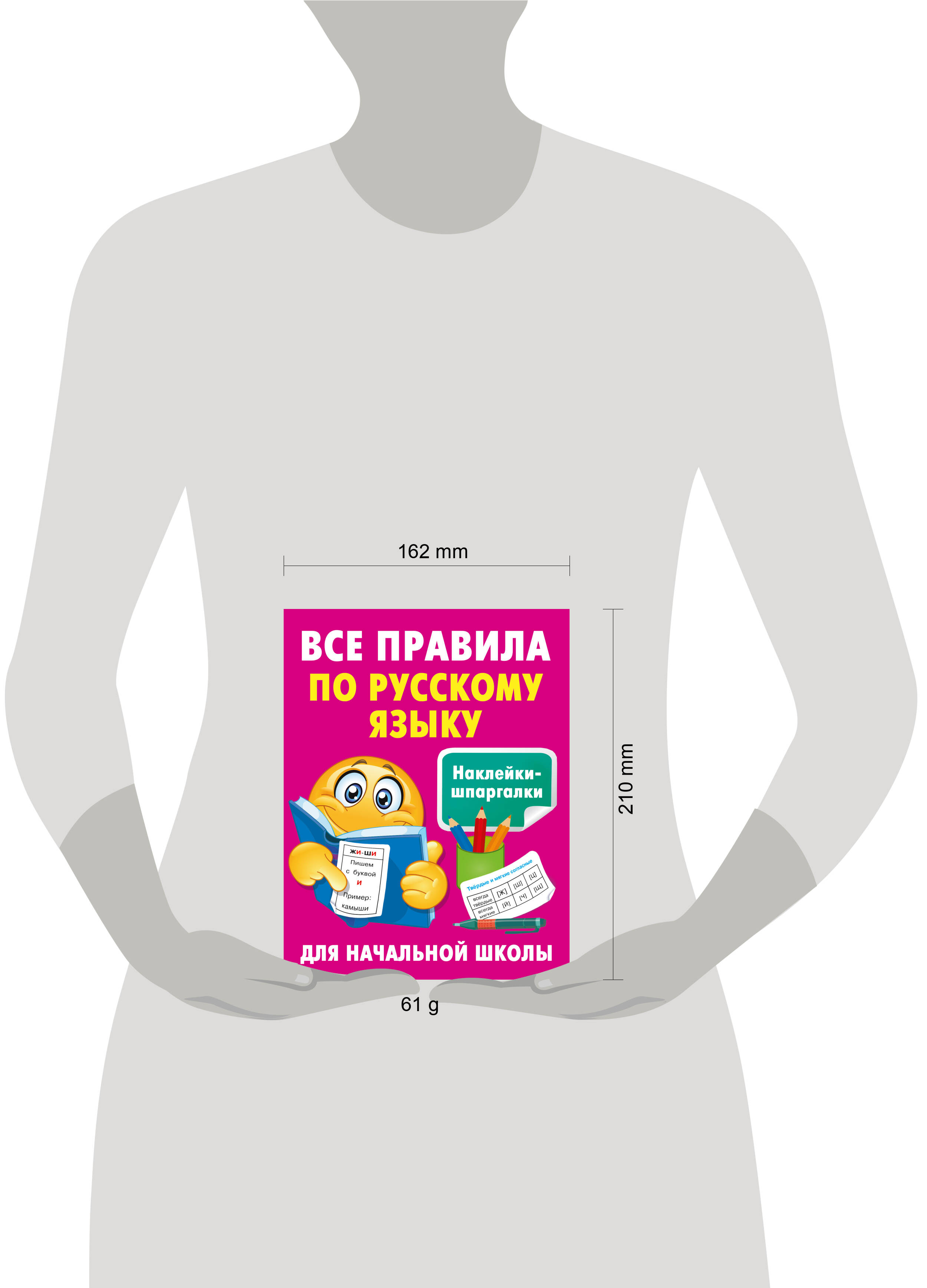 «Все правила по русскому языку» - это справочное пособие для учеников начальной школы. На его страницах в простой и наглядной форме представлены все основные правила по русскому языку, изучаемые в 1−4 классах. Цветовое выделение отдельных элементов текста облегчает запоминание информации, делает процесс обучения эффективным. Также под обложкой ученик найдёт цветные наклейки-шпаргалки - надёжную памятку, которая позволит школьнику легко освоить алфавит, выучить падежи, запомнить падежные вопросы, научиться определять главные и второстепенные члены предложения.| Издательство | Издательство "АСТ" |