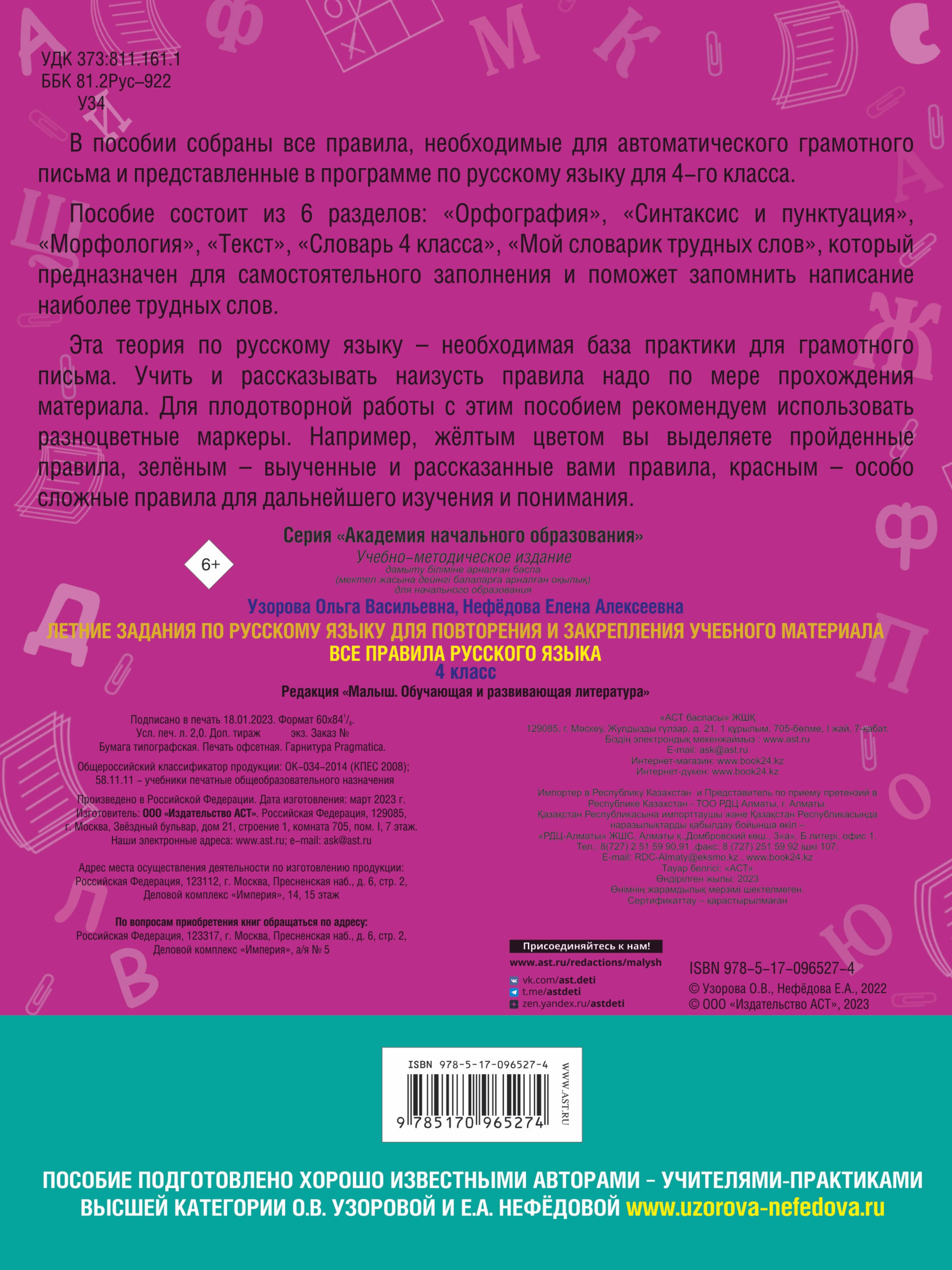 Аннотация: Летние задания по русскому языку. Все правила для повторения и закрепления учебного материала. 4 класс
