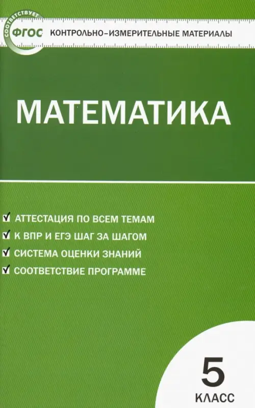 В пособии представлены контрольно-измерительные материалы по математике для 5 класса. Все задания соответствуют программе общеобразовательных учреждений и требованиям к уровню подготовки учащихся. Систематическая работа с материалами сборника позволит обучить школьников работе с тестами, что поможет в дальнейшем успешно выполнить задания государственной аттестации и тесты ЕГЭ.